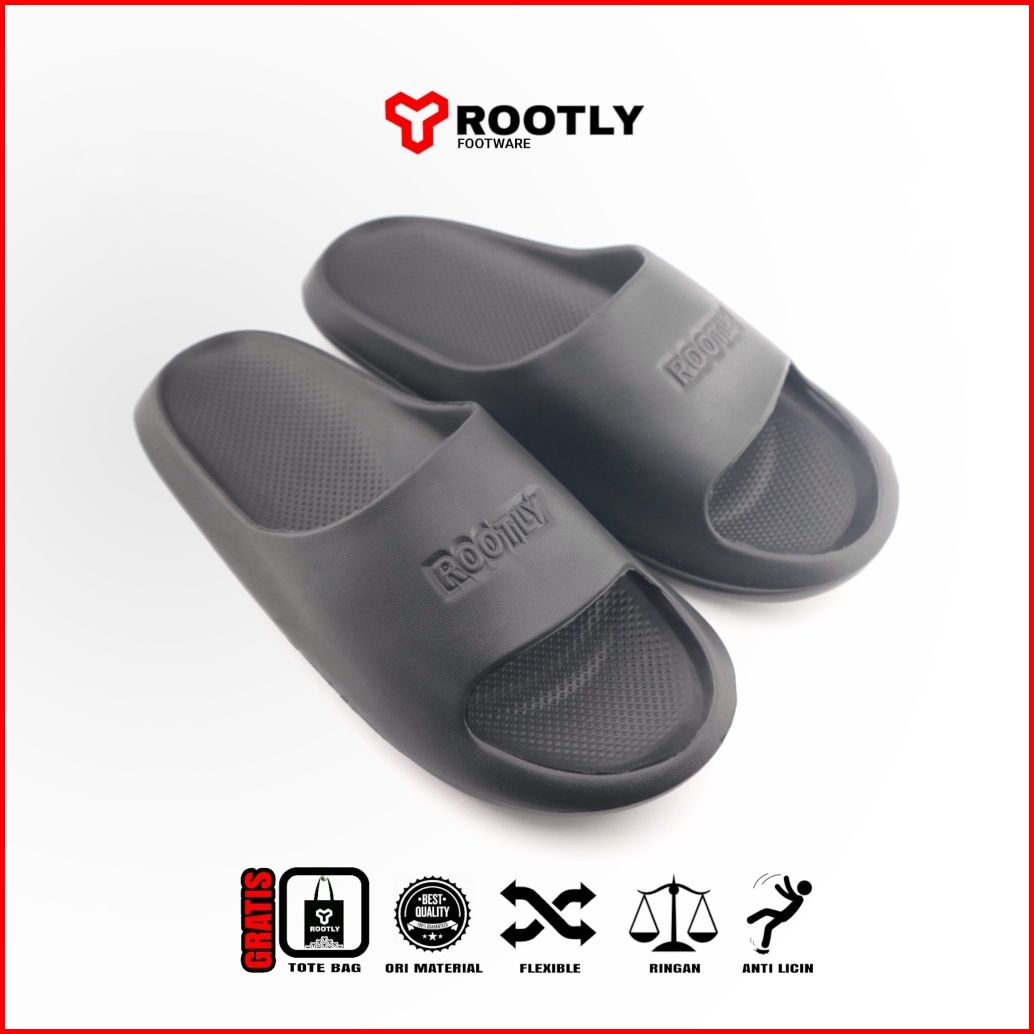Rootly - Sandal Selop Hitam Cowok Cewek Slide Ringan Bahan Phylon