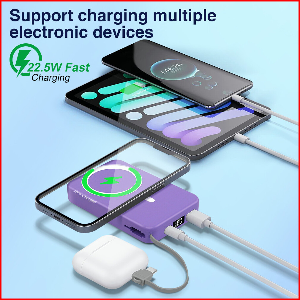 Goojodoq 10000mah Magnetic Power Bank With Foldable Stand Fast Wireless Charger 15w External Battery 22.5w Pd Usb C For