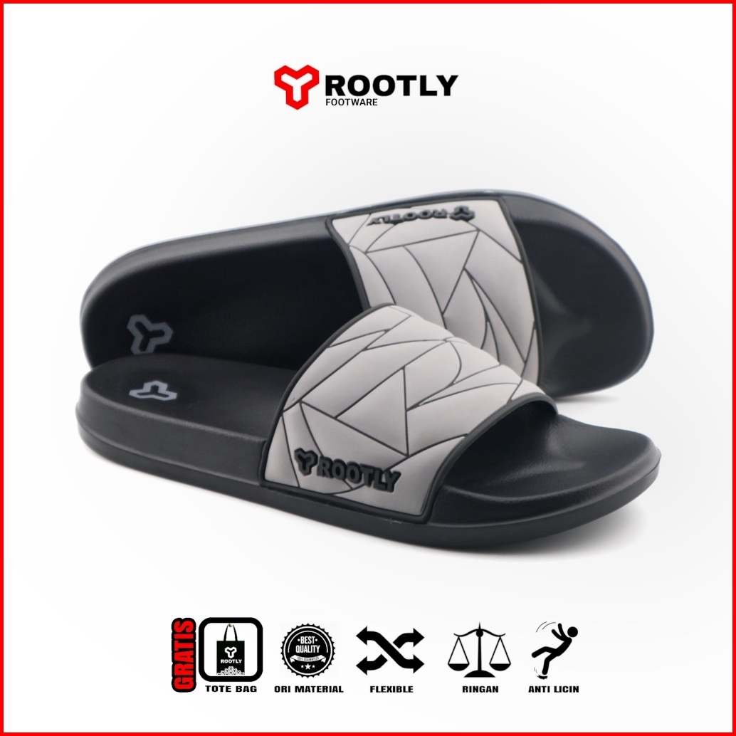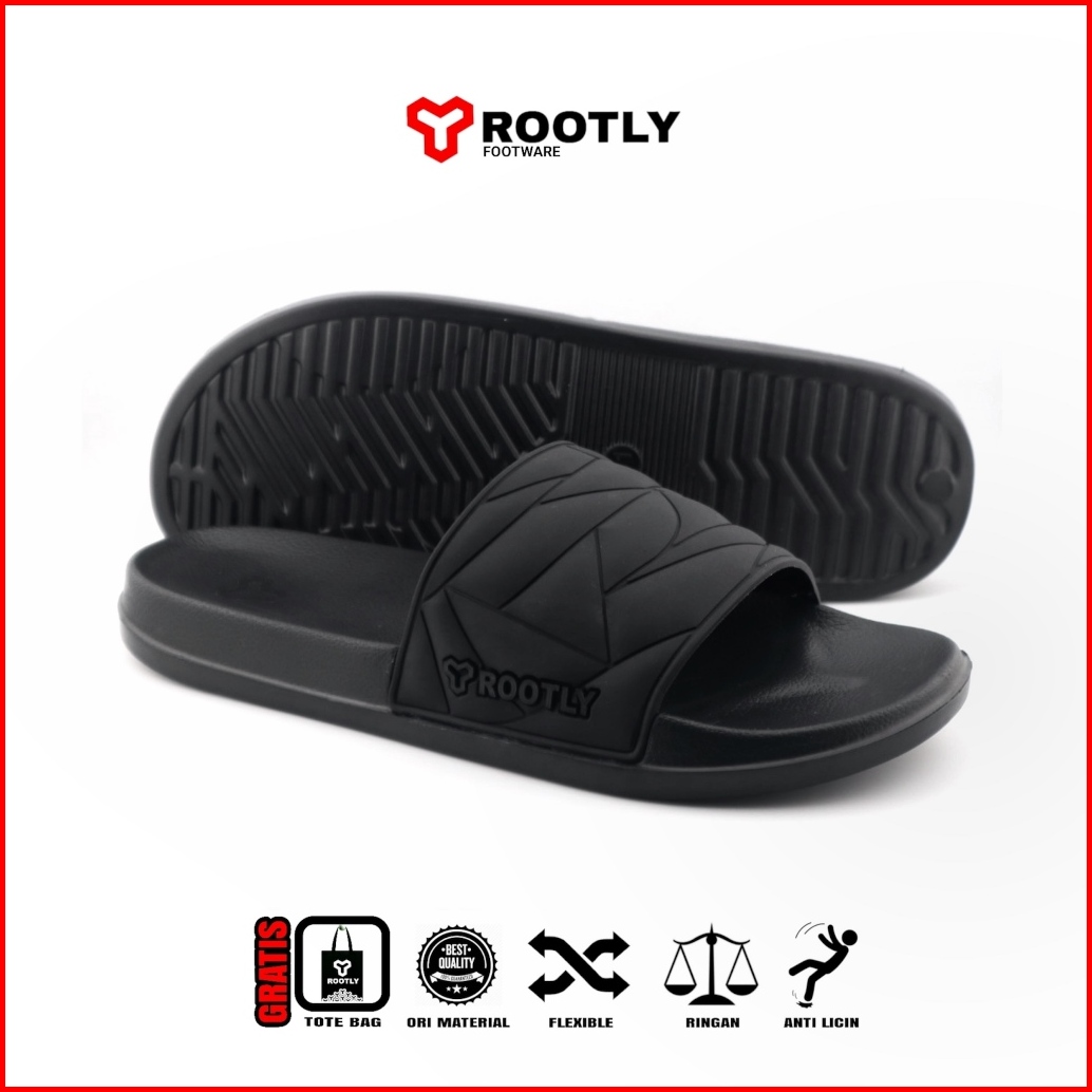 Rootly - Sandal Hitam Selop Pria Rush Keren Anti Licin