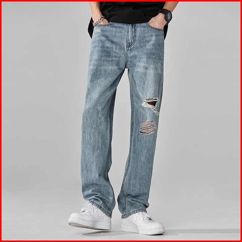 Keyboy Celana Jeans Pria Sobek Panjang Baggy Pants Celana Kulot Cowok Dewasa Robek Korean Style