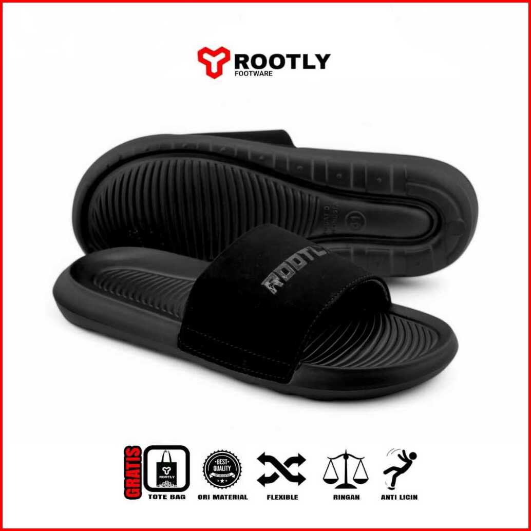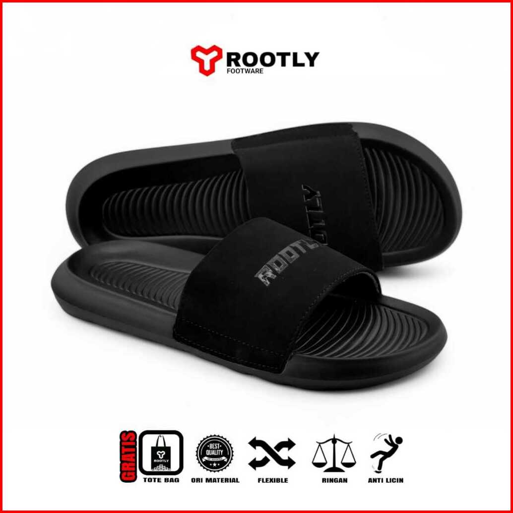 Rootly - Sandal Slide Pria Fullblack Series Soul Polos