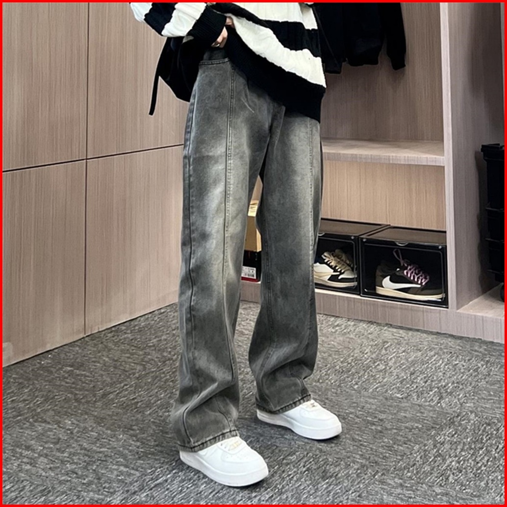 Keyboy Celana Jeans Pria Baggy Pants Straight Panjang Cowok Casual Celana Denim Dewasa Laki Laki Loose Fit Celana Kulot