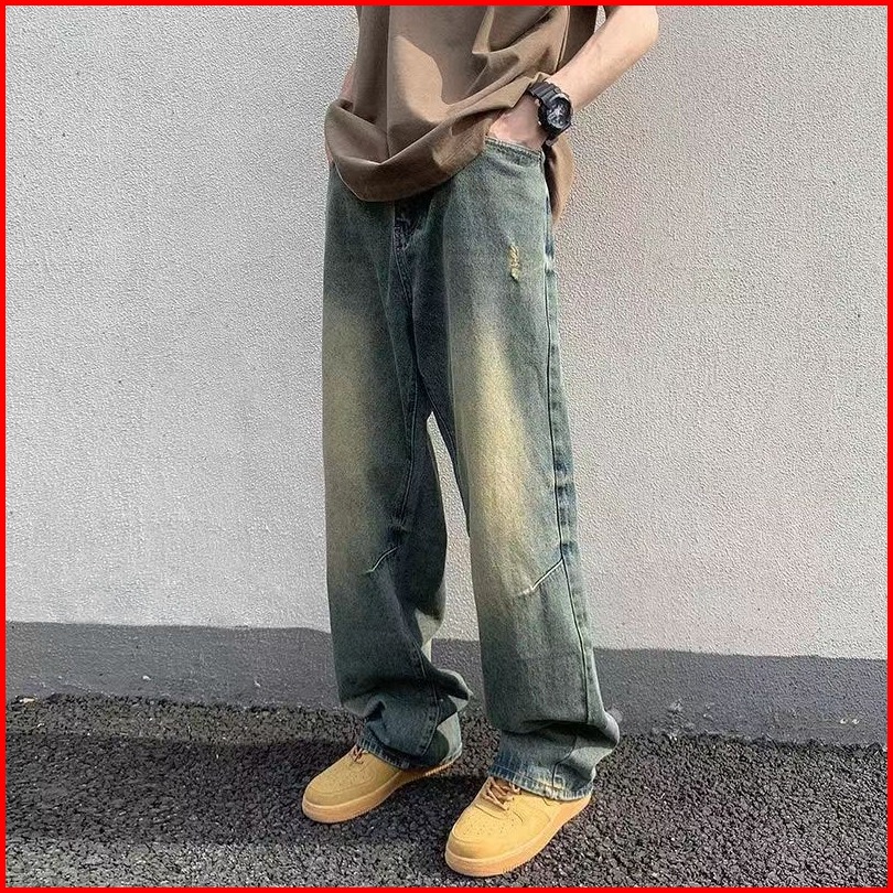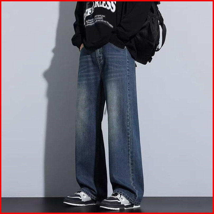 Keyboy Celana Jeans Pria Panjang Baggy Biru Kulot Celana Dewasa Cowok Straight Denim Pants Korean Style