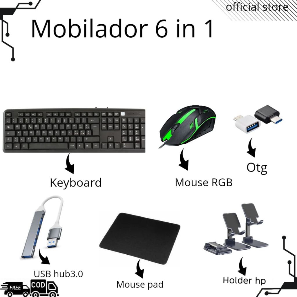 Mobilador game 1set 6 in 1 (Keyboard, Mouse, Usb port, Otg micro/type c,mousepad,holder)