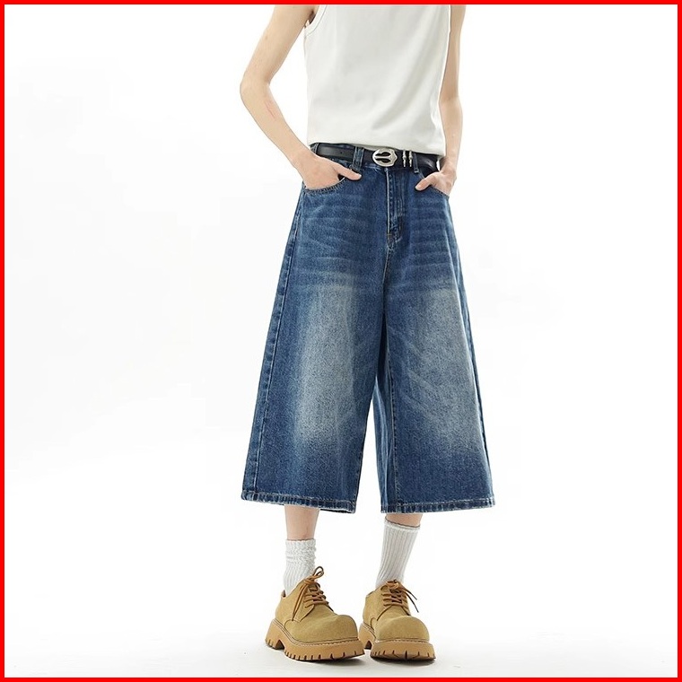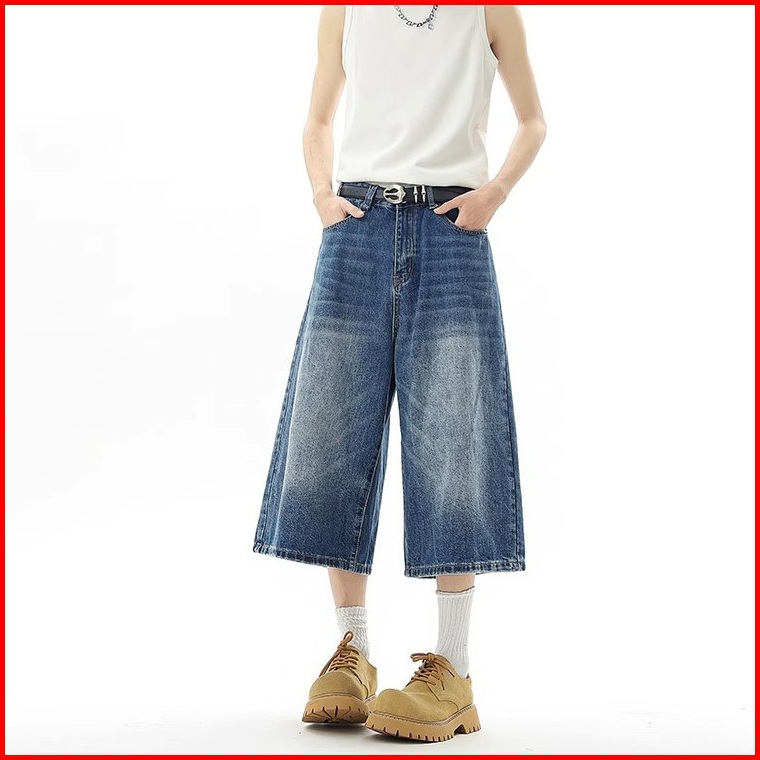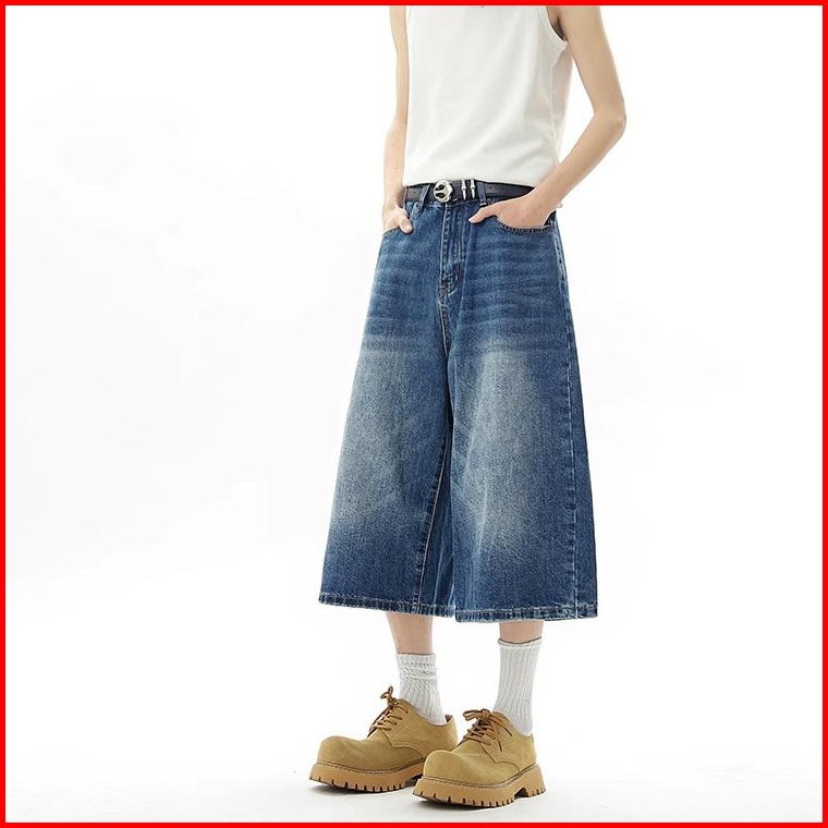Keyboy Celana Pendek Pria Panjang Baggy Jeans Straight Cut Celana Casual Denim Pants For Men Korean Style