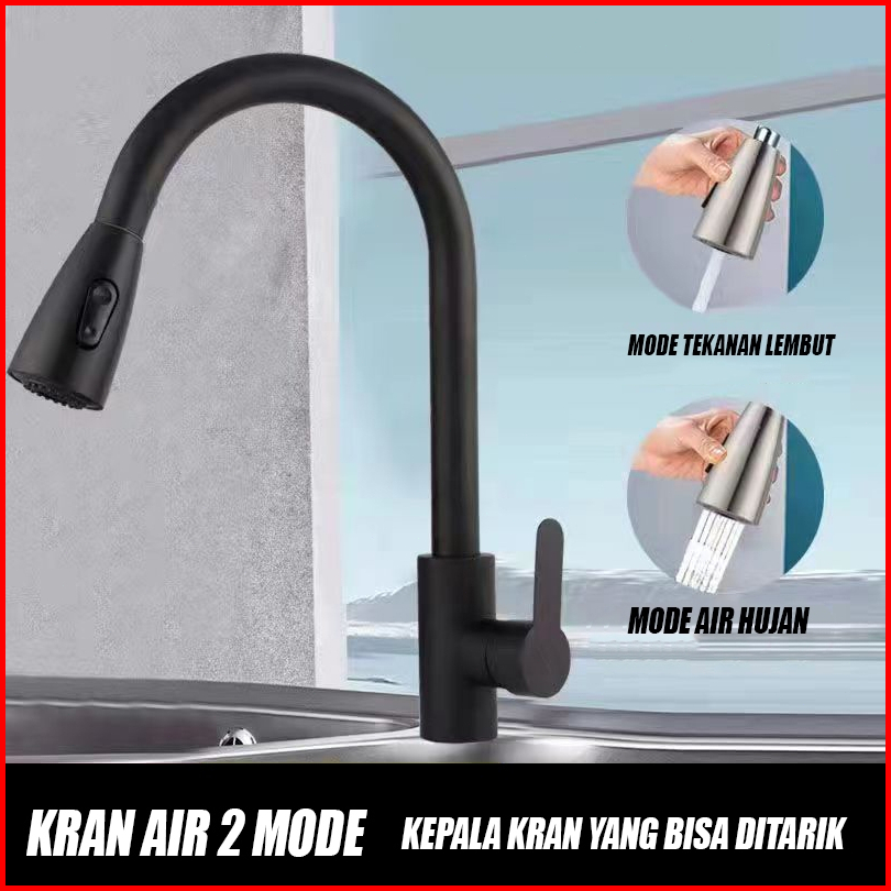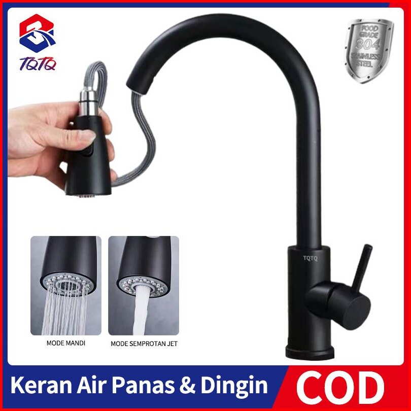 Tqtq Kran Tarik Kitchen Sink Keran Dapur Bak Cuci Piring Kran Sink Hitam Perak Stainless