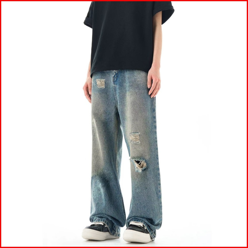 Keyboy Celana Jeans Pria Baggy Panjang Sobek Baggy Dewasa Cowok Ripped Denim Pants Korean Style