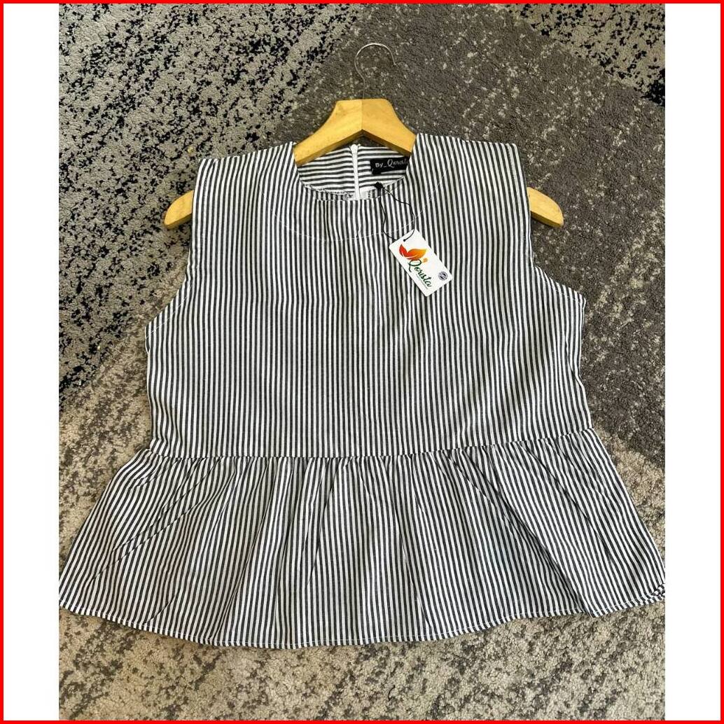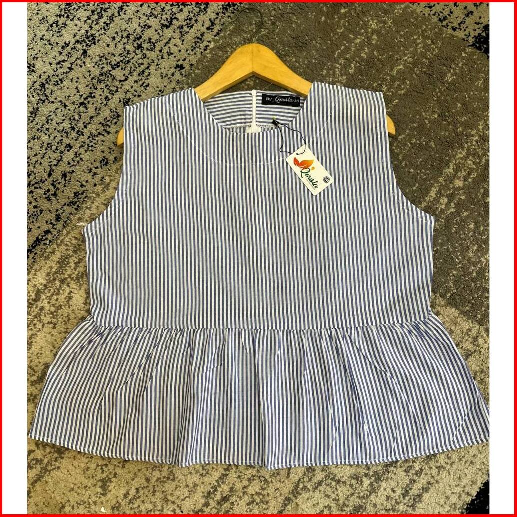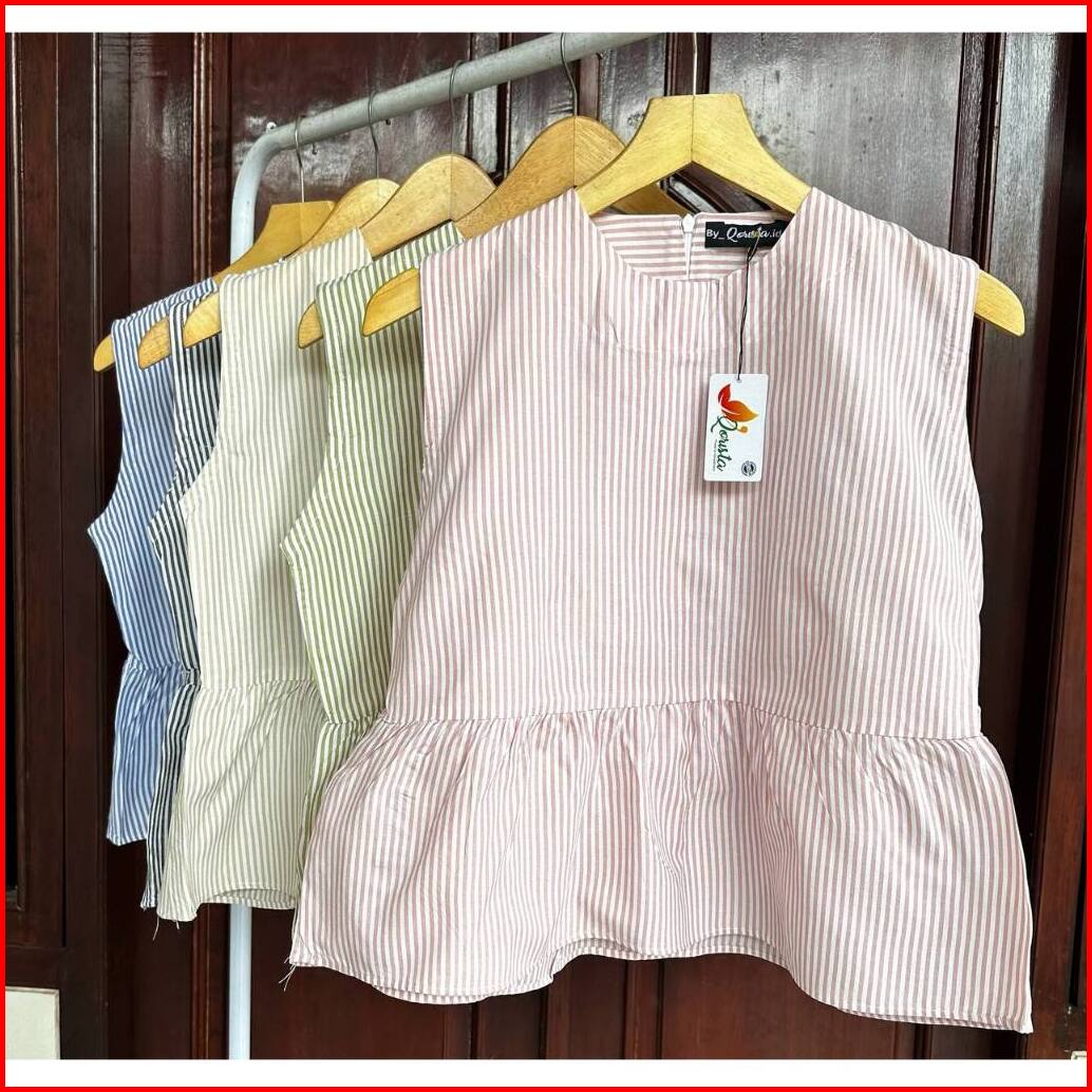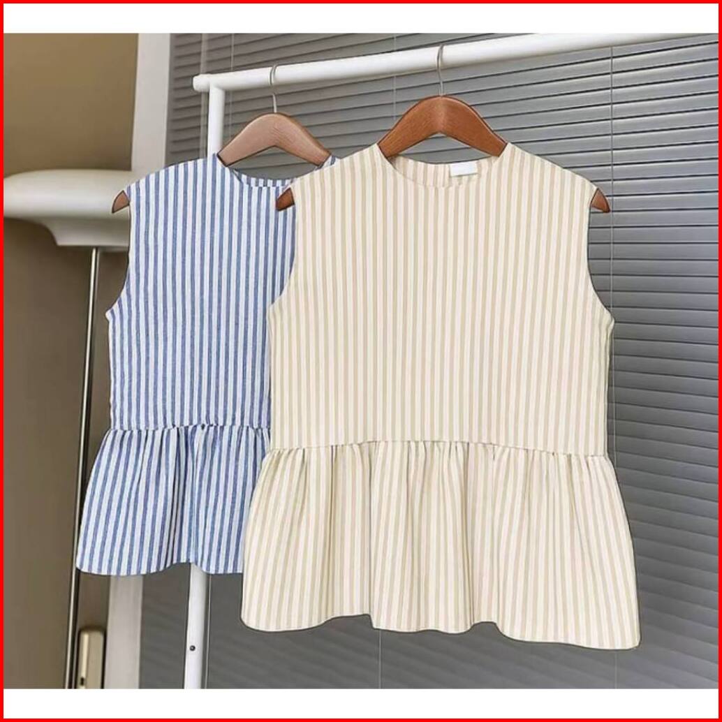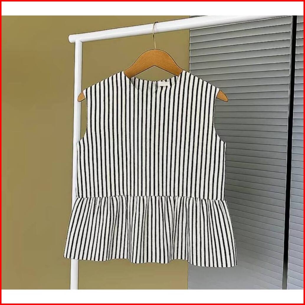 Amora Vest Inner Peplum Top Gaya Korean Style Inner Cardigan Stripe Blouse