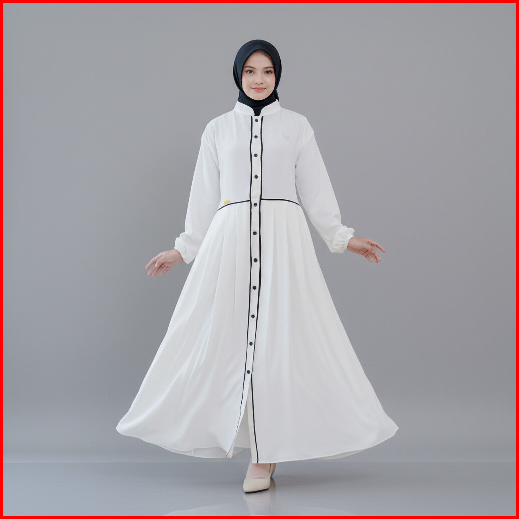 Gamis Wanita Dewasa Rempel Full Kancing Depan Dress Pita Swarovski Mewah Amara - Biansastyle