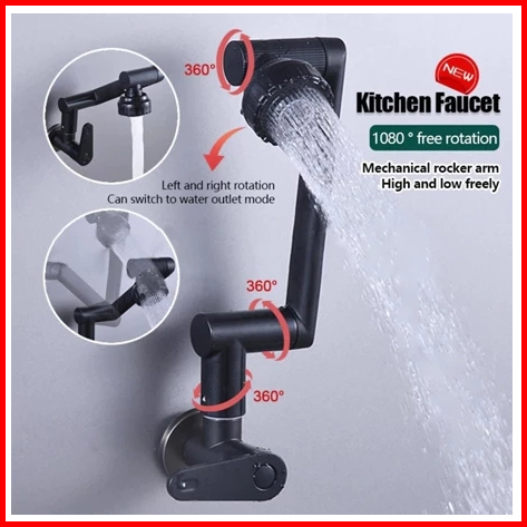 Kran Tembok Fleksibel Kran Angsa Dinding Dapur Kran Air Cuci Piring 360 Rotasi Kran Wastafel