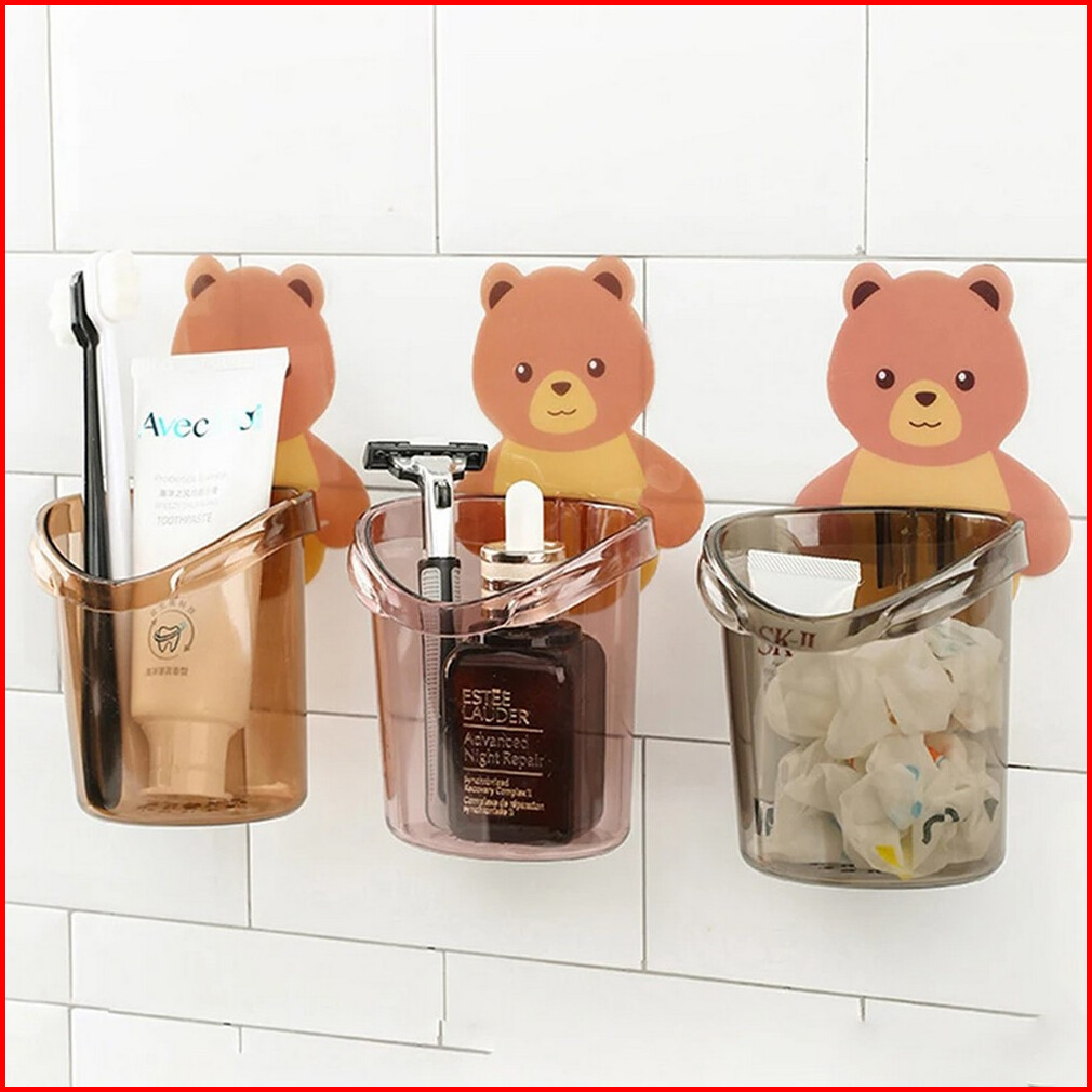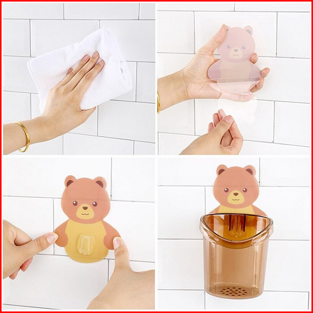 Tempat Sikat Gigi Rak Tempel Dinding Motif Beruang Serbaguna Toothpaste Holder Kamar Mandi Model Tempel Az Zahra Shop C4