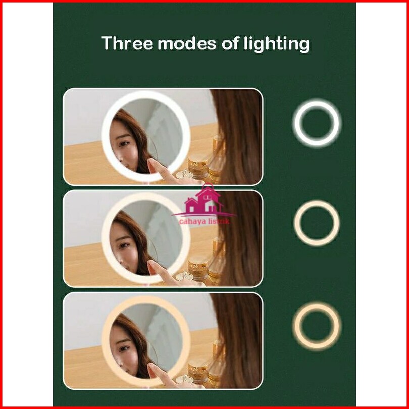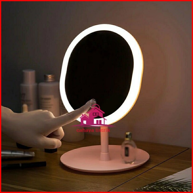 Led Mirror Cermin Lampu Tidur Bulat Kaca Rias Dandan Makeup Kosmetik Putih Pink Bagus Terang