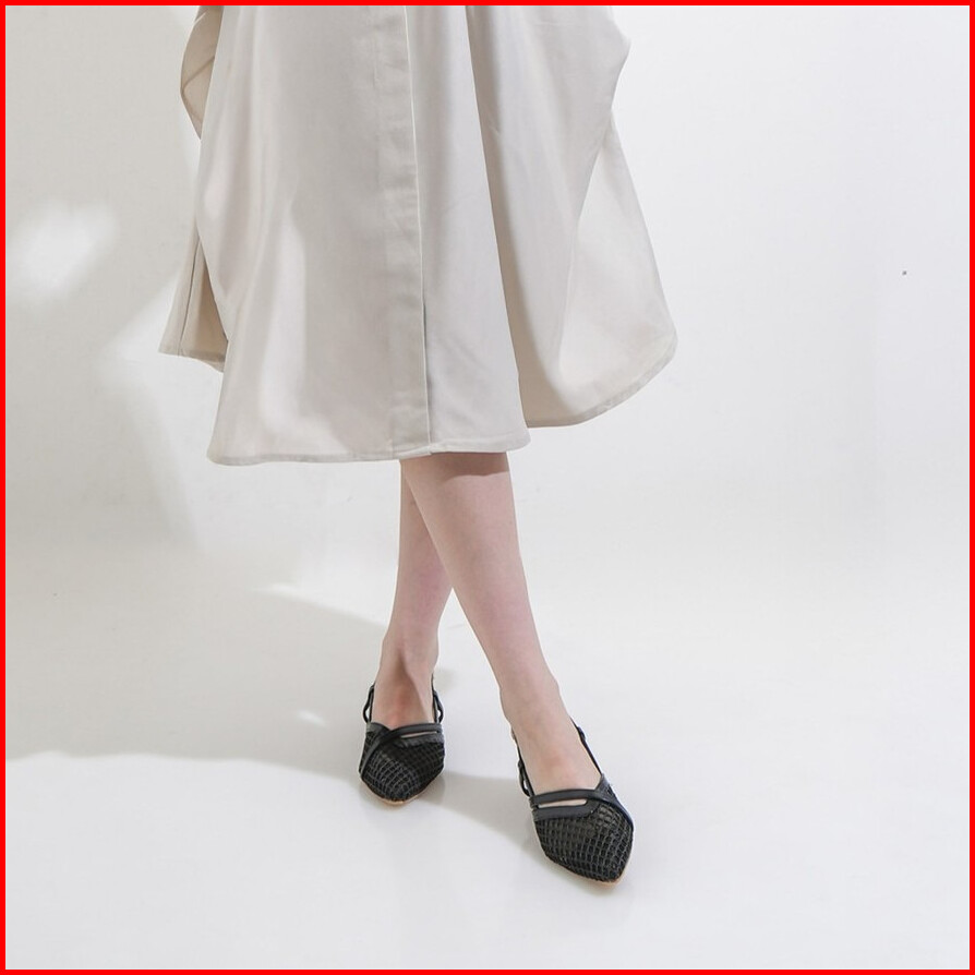 Hallyu Feet Yoo-jin Mules Cream Black Mesh Flats 2 Cm Sandal Jaring Elegan Pesta Baru