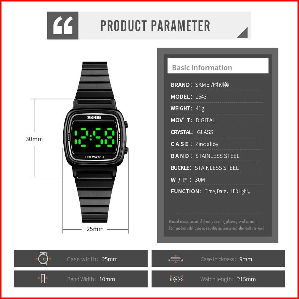 Skmei 1543 Original Jam Tangan Wanita Digital Rantai Stainless Steel Fashion Wanita Tahan Air