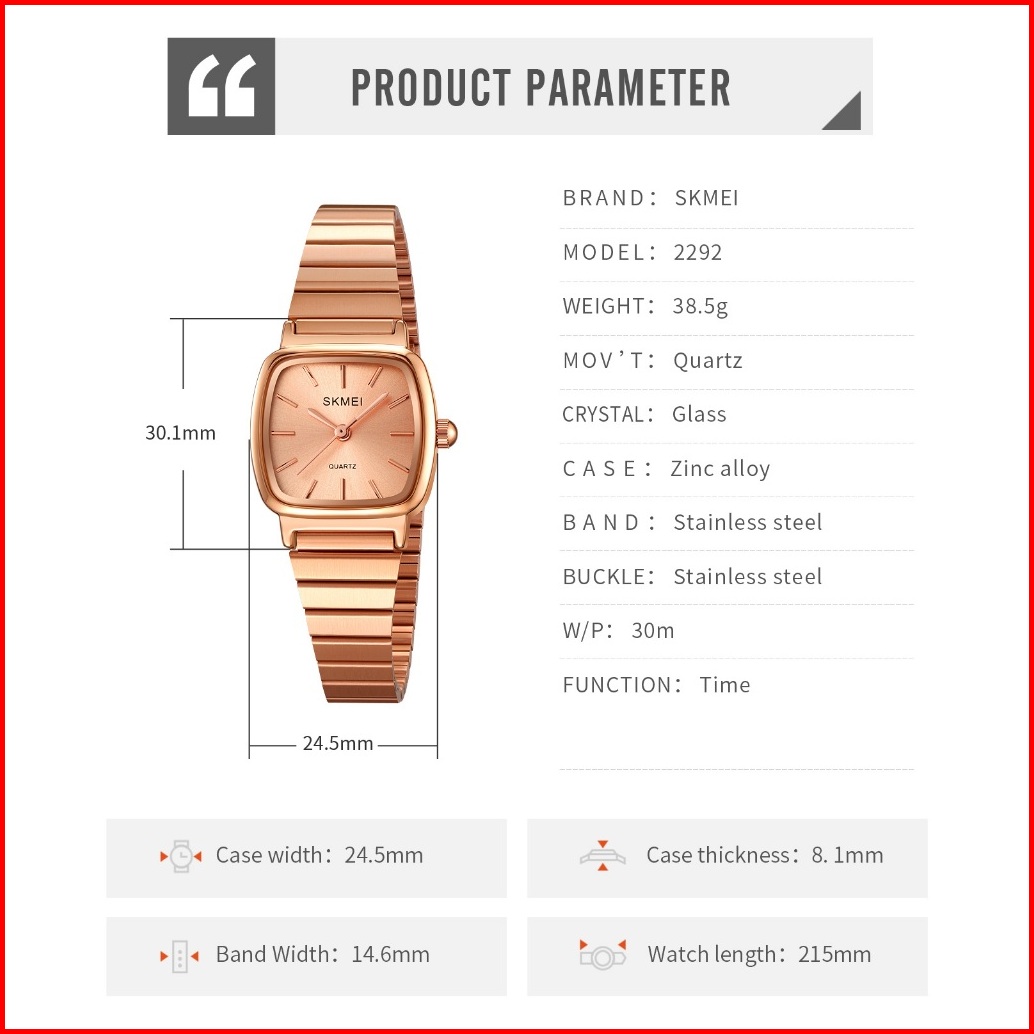 Skmei 2292 Original Jam Tangan Wanita Analog Rantai Stainless Steel Fashion Jam Tangan Tahan Air