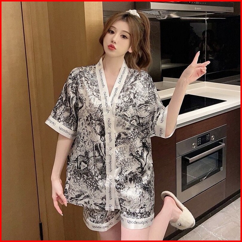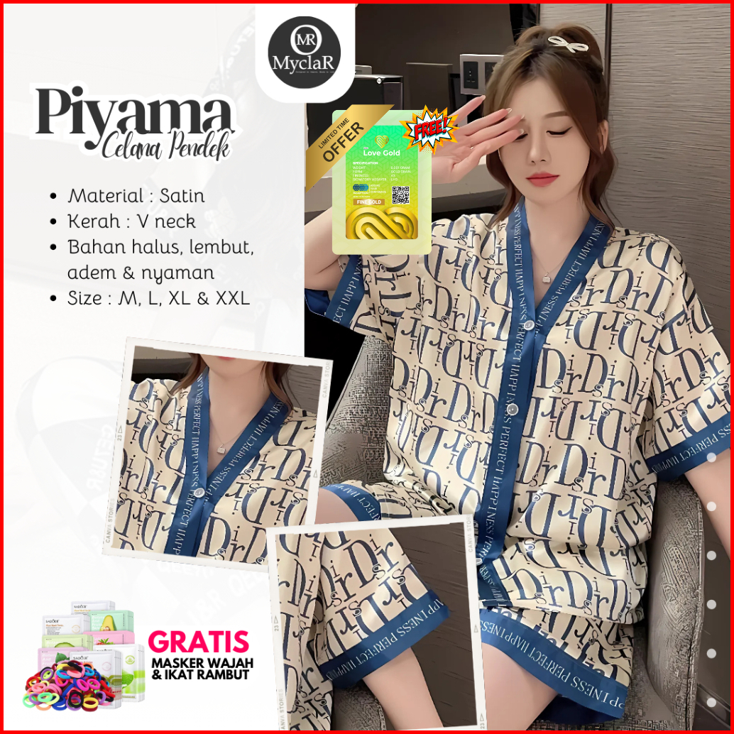 Satu Set Baju Tidur Premium Piyama Pajamas Wanita Impor Motif Celana Pendek One Set Setelan Myclar