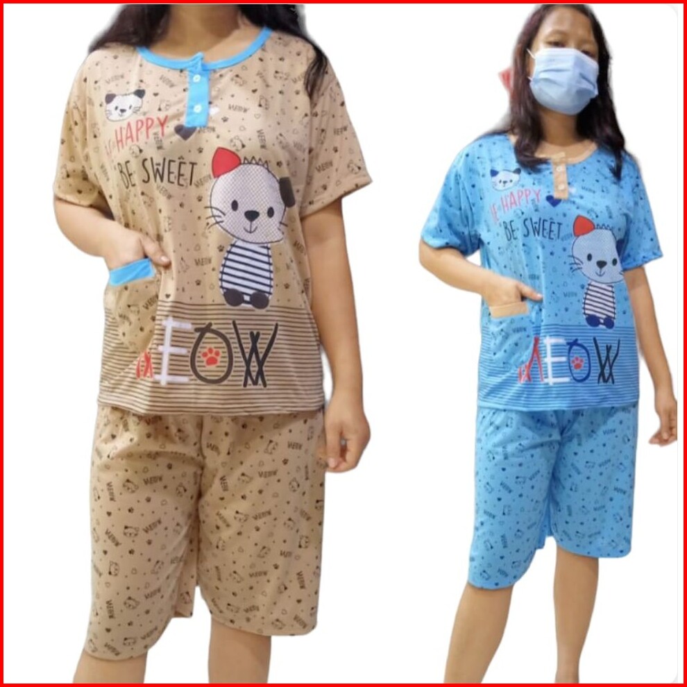 Baju Tidur Wanita Dewasa Cantik Set 3 4 Babydoll Bahan Kaos Tebal Standart Dewasa Bb Max 70kg