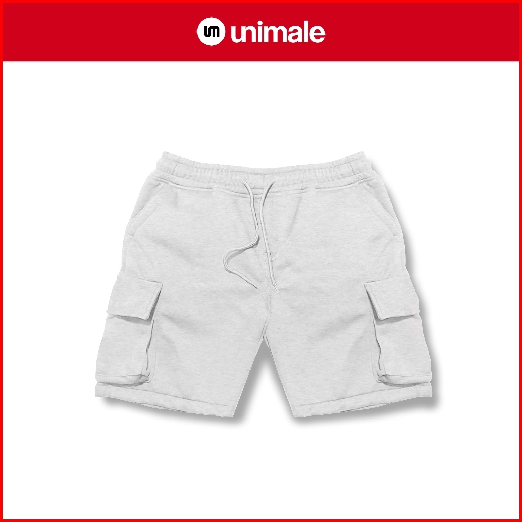 Unimale - Celana Pendek Pria Cargo Pants Fleece Abu Abu Polos