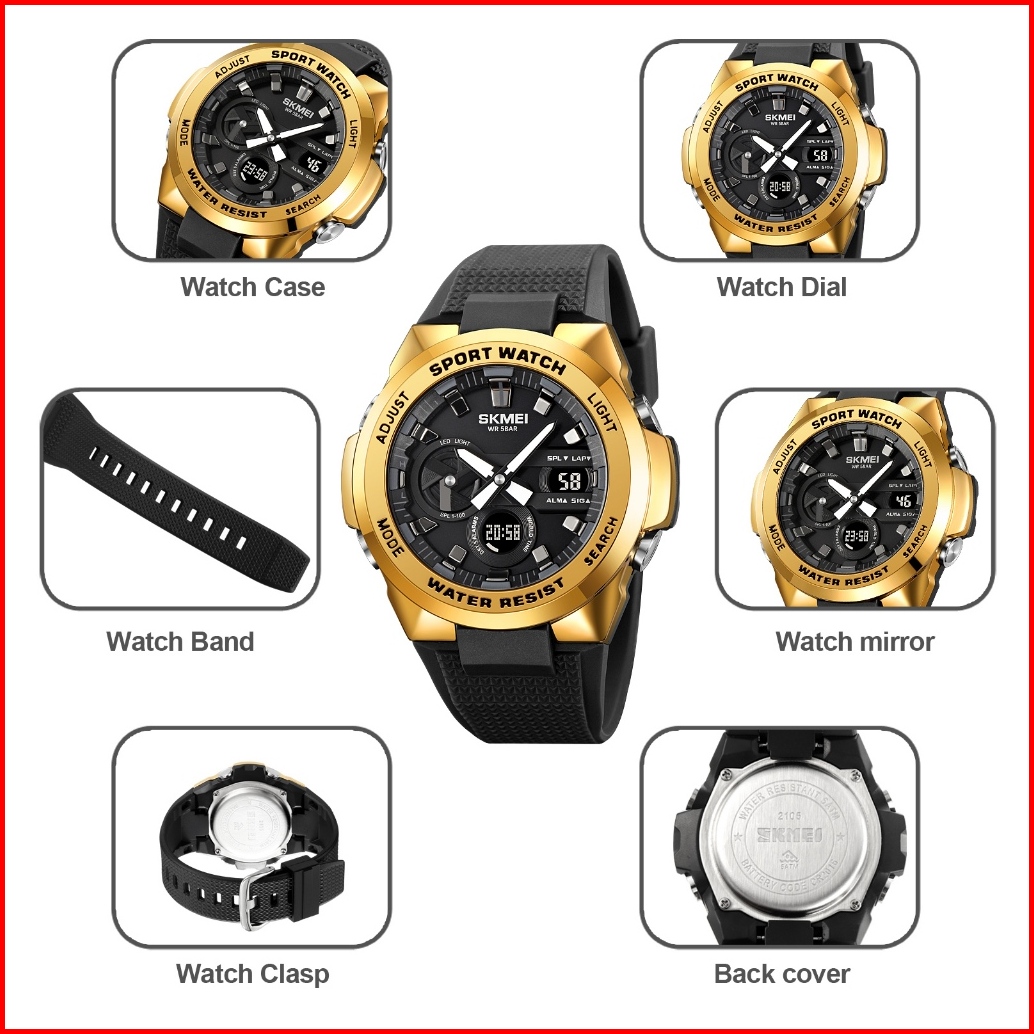 Skmei 2105 Original Jam Tangan Dual Time Pria Strap Rubber Karet Jam Tangan Tahan Air