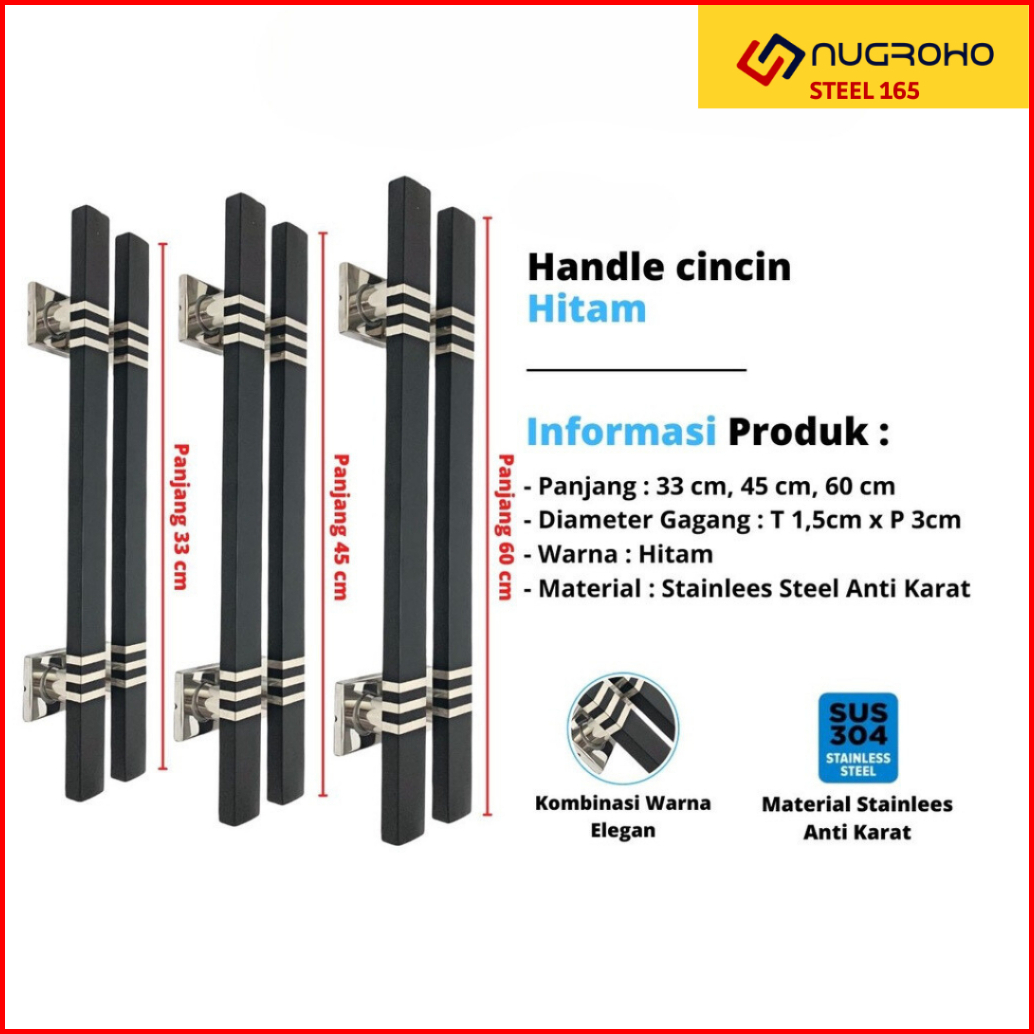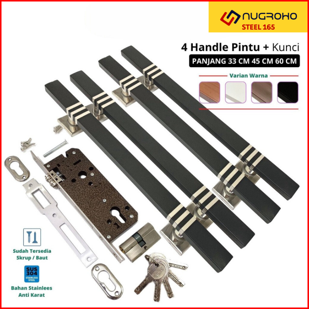 Paket Pull Handle Pegangan Gagang Tarikan Pintu Rumah Minimalis Kupu Tarung Panjang 33 Cm 45 Cm 60 Cm Fullset Body Kunci