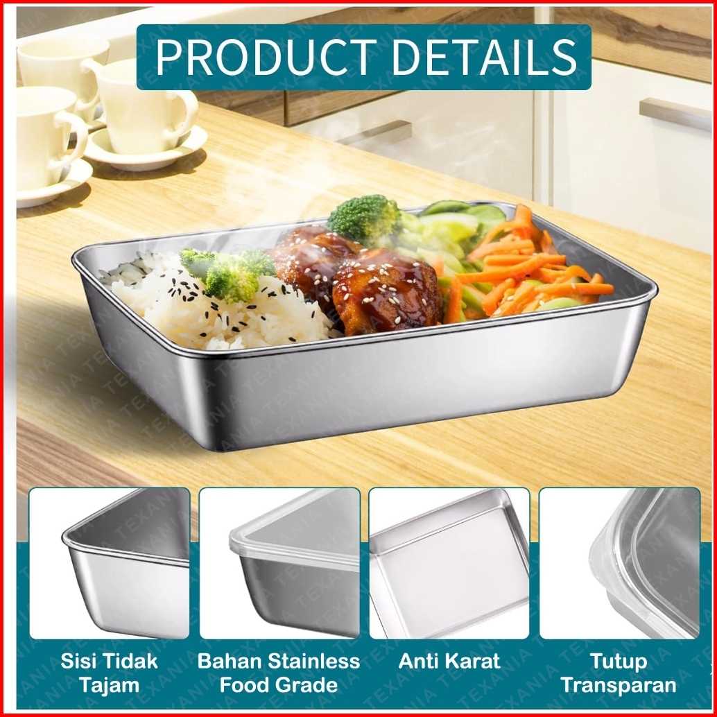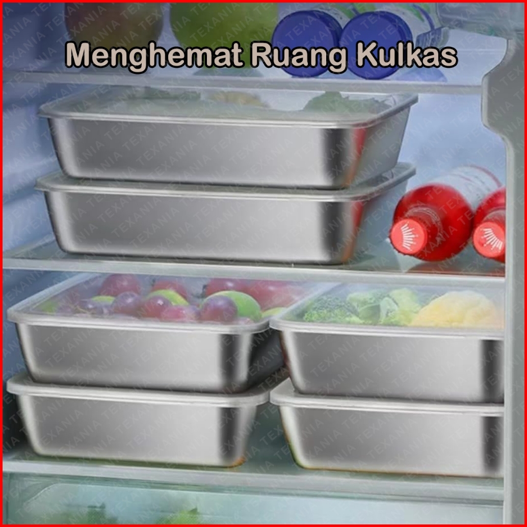 Texania Food Box Isi 5pcs Wadah Makanan Multifungsi Stainless Steel Free Sendok 12pcs Kitchenware