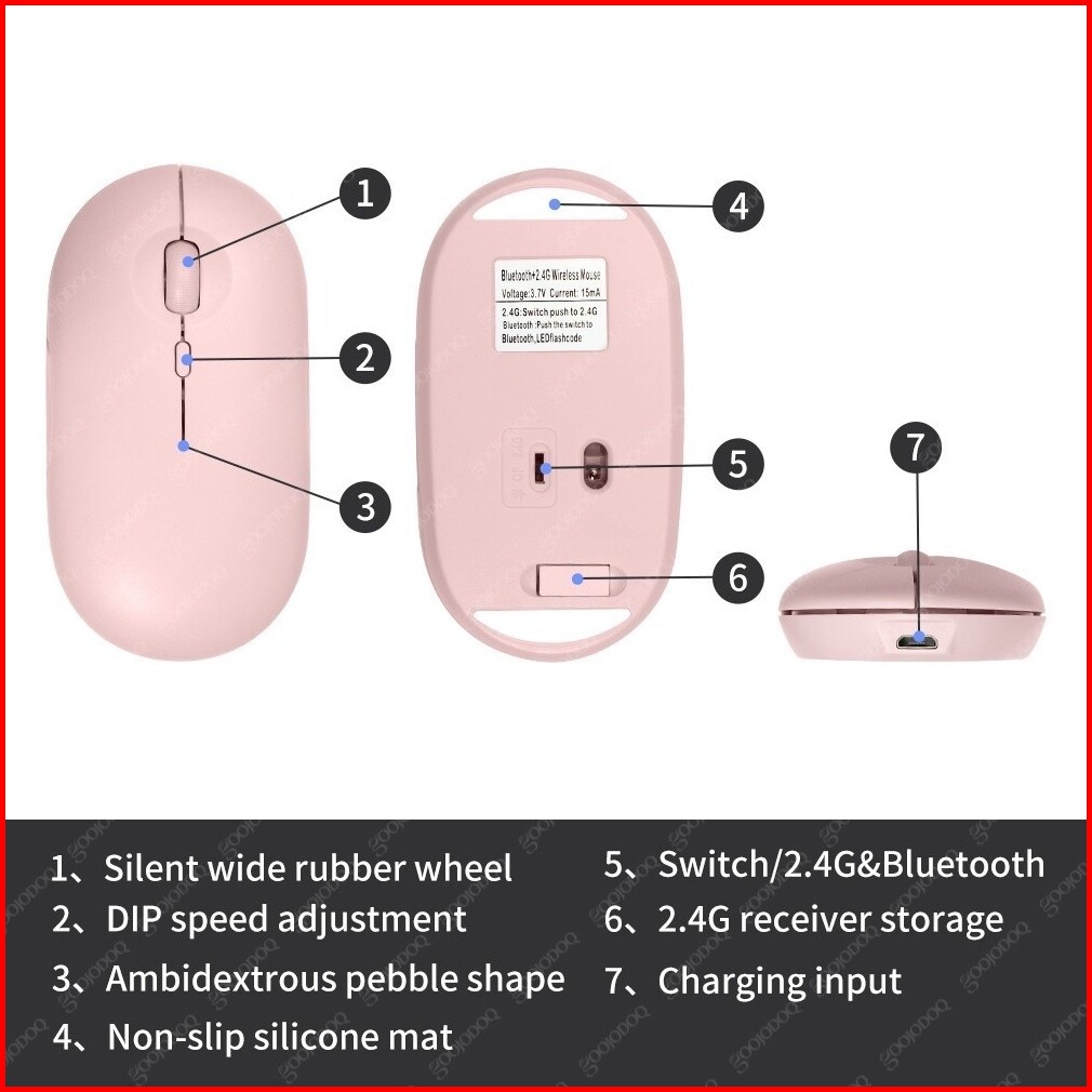 Goojodoq Bluetooth Wireless Gaming Mouse Rechargeable Ultra Thin Silent Pink Mouse For Tablet Laptop Pc