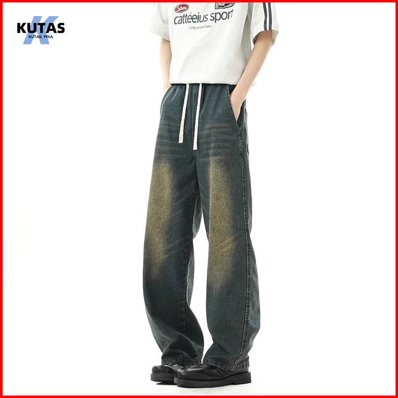 Kutas Pria - Celana Jeans Pria Korean Style Celana Panjang Pria Jeans Celana Jeans Pinggang Karet Oversize Vintage Baggy