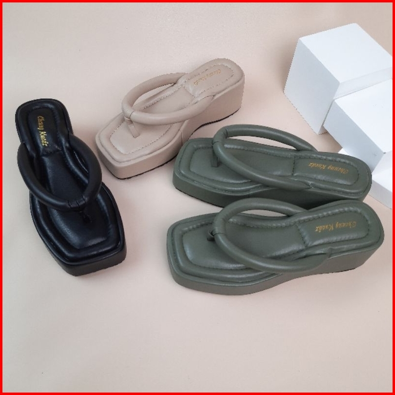 Cheung Kuedz Nami Sandal Spons Premium Model Jepit Hak 5cm