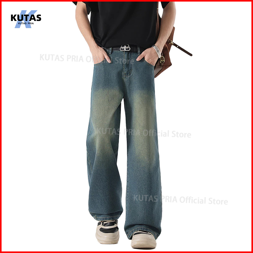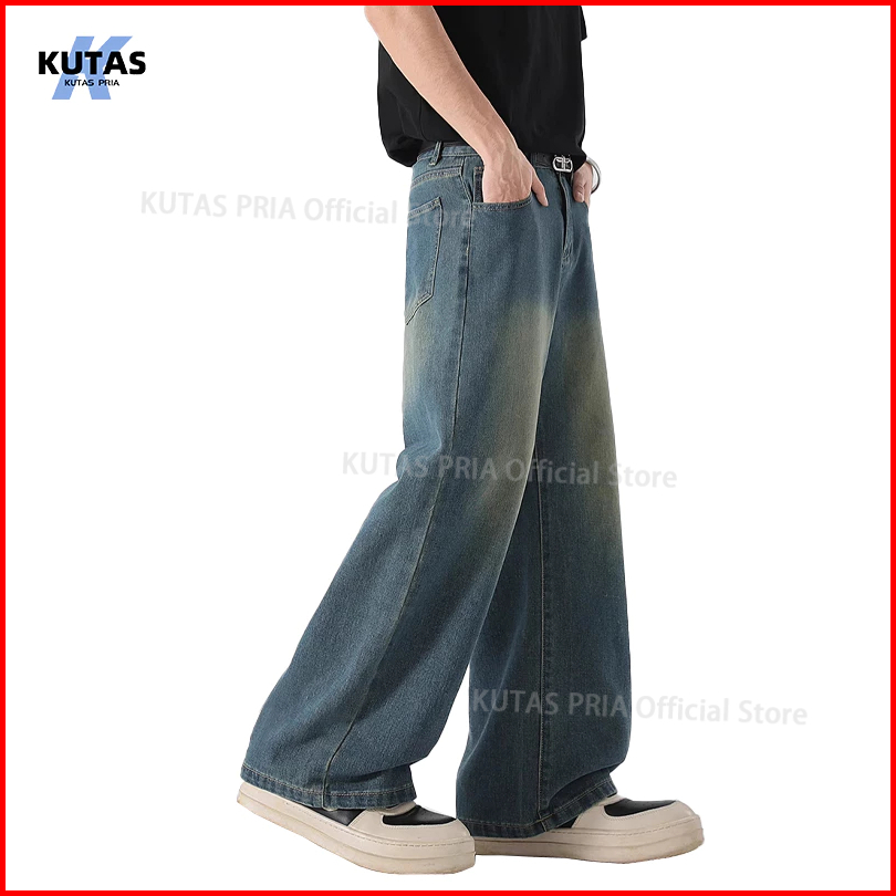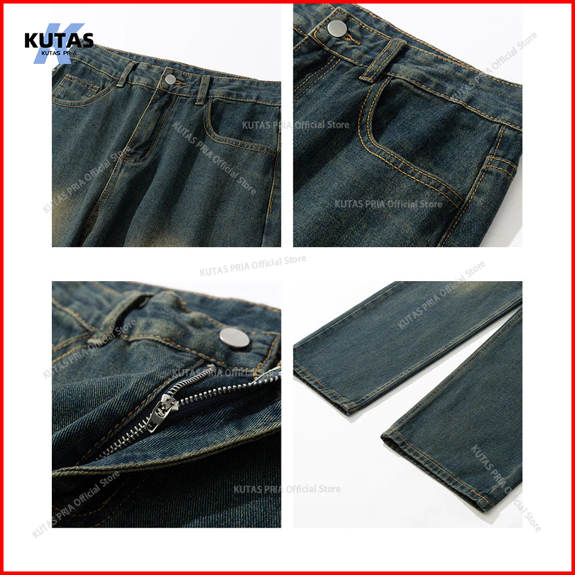 Celana Jeans Biru Retro Celana Jeans Pria Vintage Baggy Jeans Dewasa Celana Denim Celana Panjang Pria Cowok Korean Style
