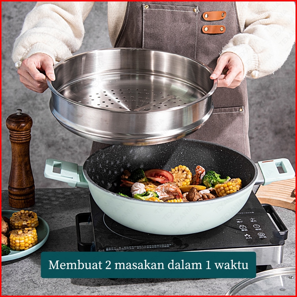 Texania Panci Kukus 32cm Serbaguna Bisa Jadi Wajan Dan Kukusan - Bahan Wajan Alumunium Alloy - Bahan Kukusan Stainless S