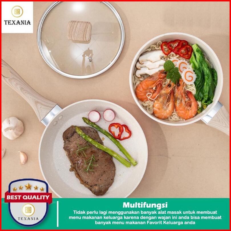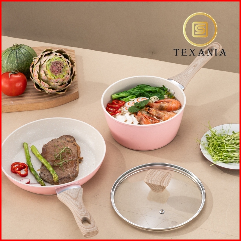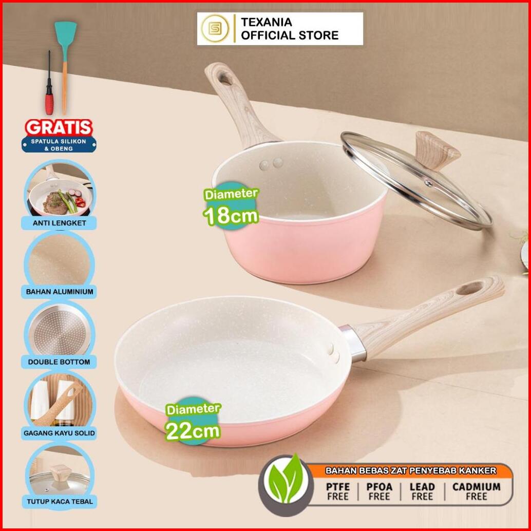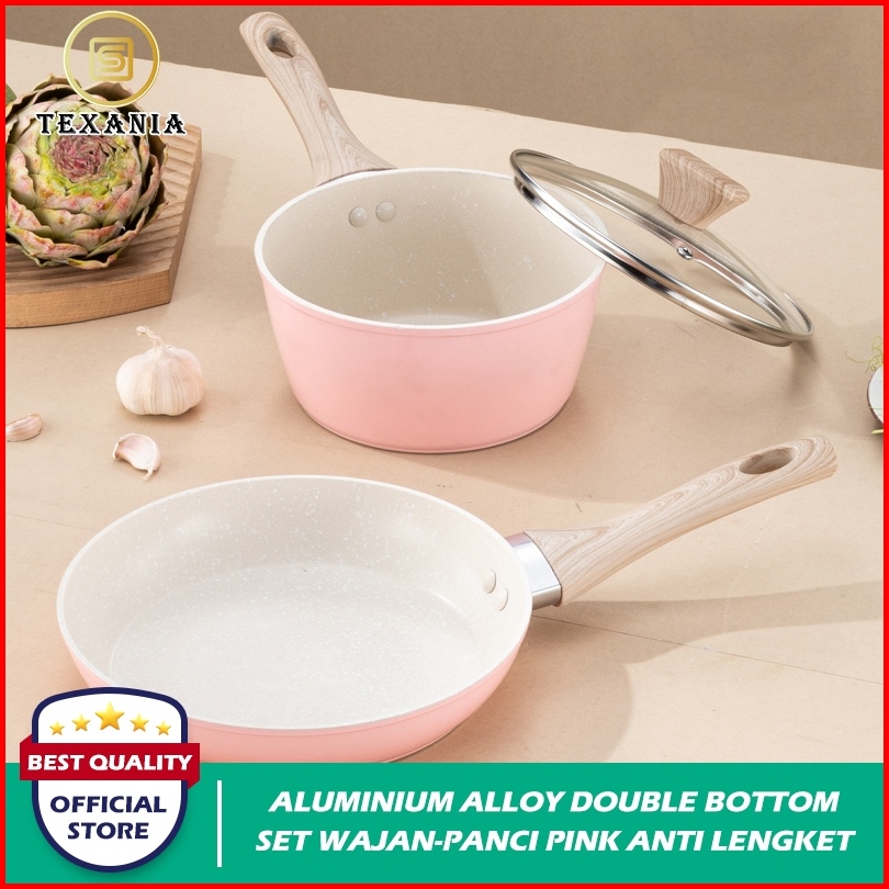 Texania Set 2pcs Wajan-panci Pink Anti Lengket Aluminium Alloy Double Bottom Untuk Semua Kompor Panci Wajan Penggorengan