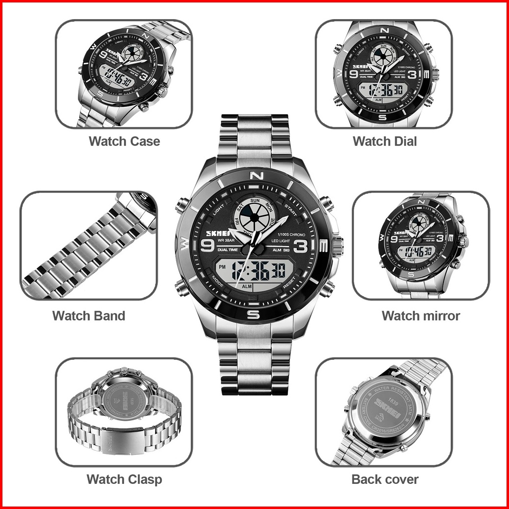 Skmei 1839 Original Jam Tangan Dual Time Stainless Steel Jam Tangan Tahan Air