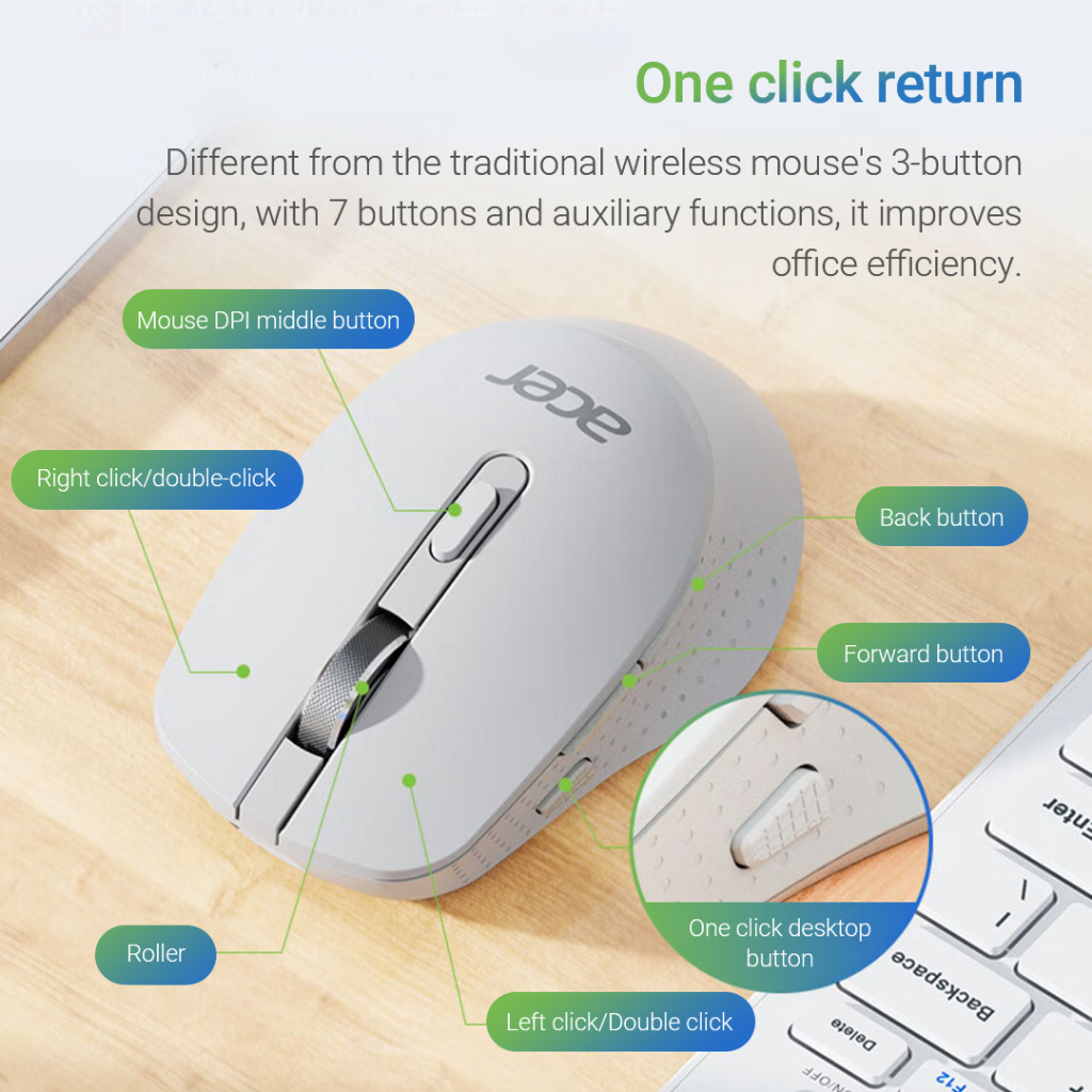 Acer Mouse Wireless Bluetooth M155 BT5.0 2.4G Dual-Mode Diisi ulang 800/1200/1600DPI Untuk Studi Kerja