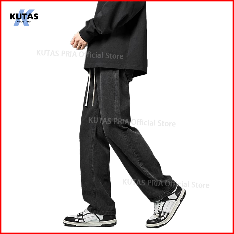 Kutas Pria-celana Jeans Pria Celana Kulot Pria Korean Style Baggy Jeans Pria Gombrong Lebar Celana Panjang Pria Celana S