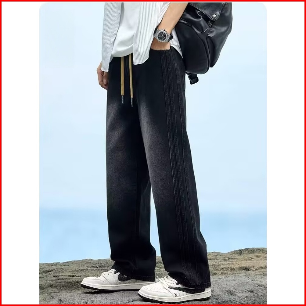 St.lab Studio Jeans Pria Vintage Jeans Biru Amerika Longgar Lurus Pinggang Elastis Celana Denim