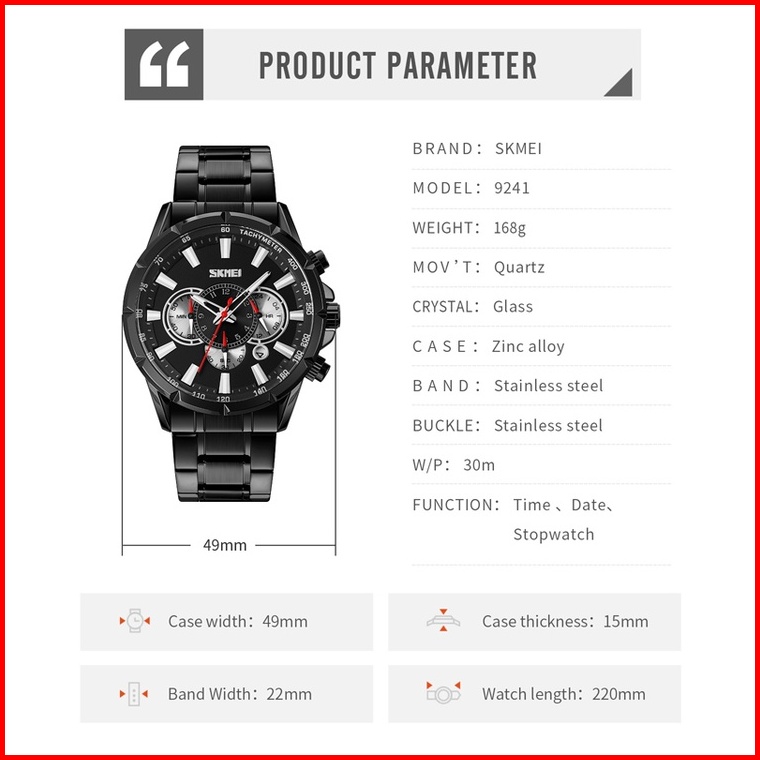 Skmei 9241 Original Jam Tangan Analog Stainless Steel Jam Tangan Tahan Air