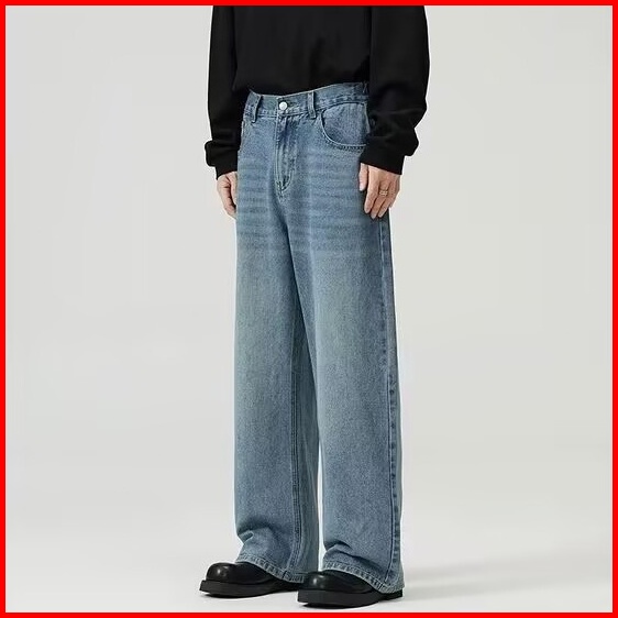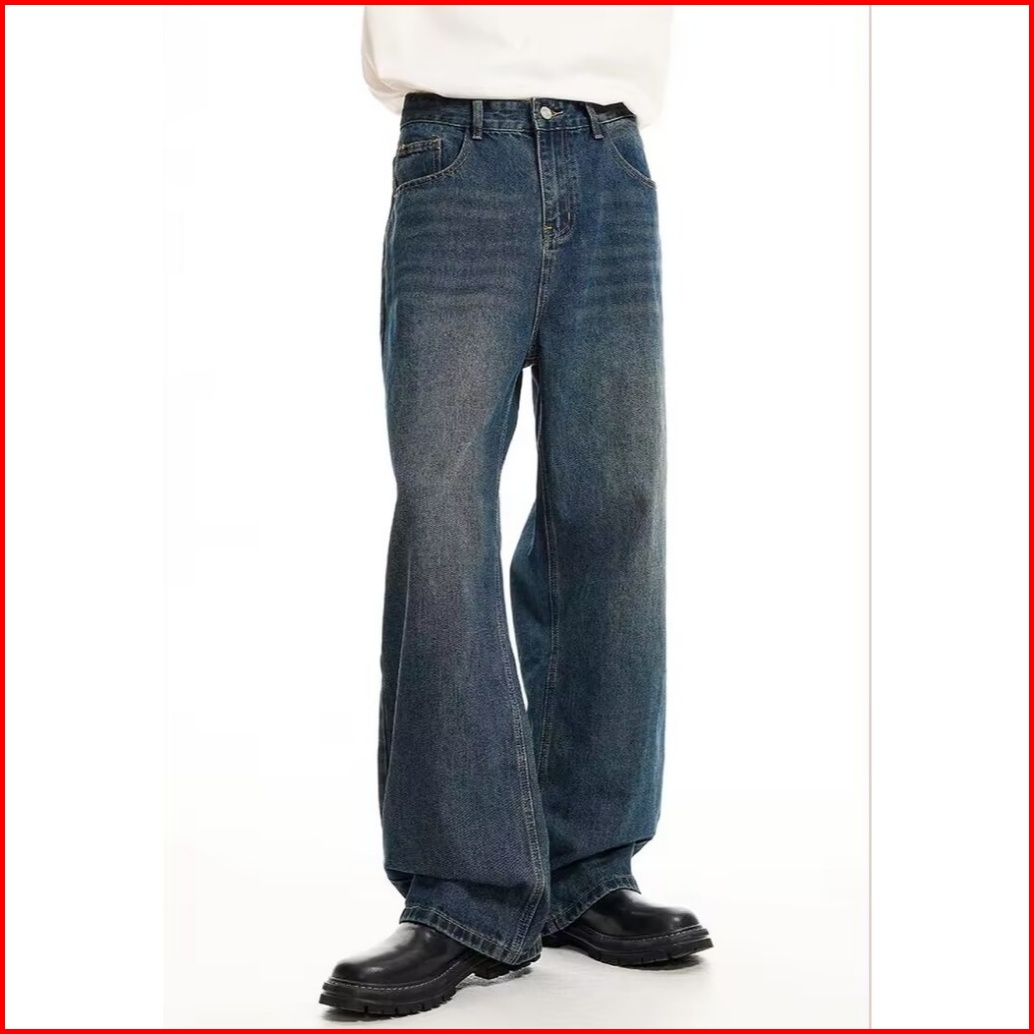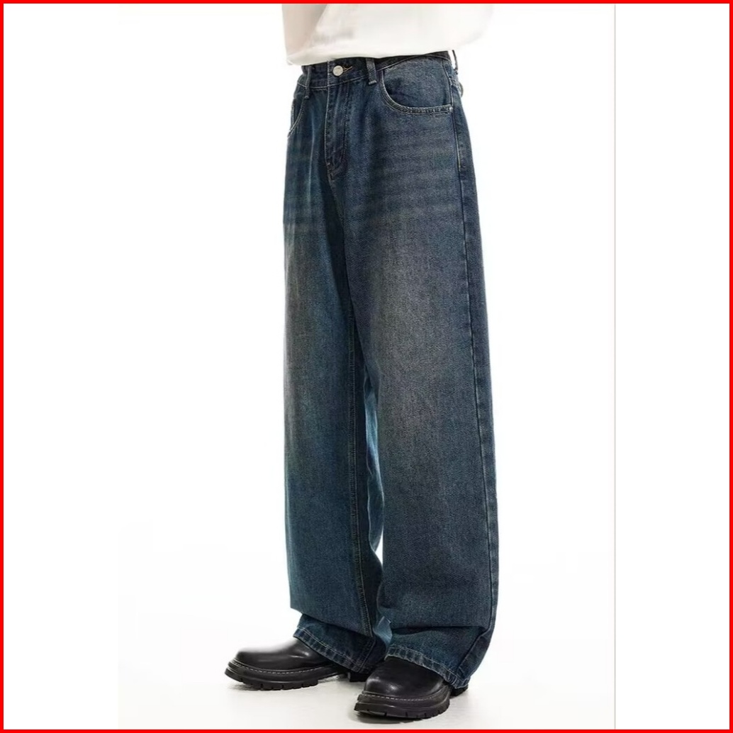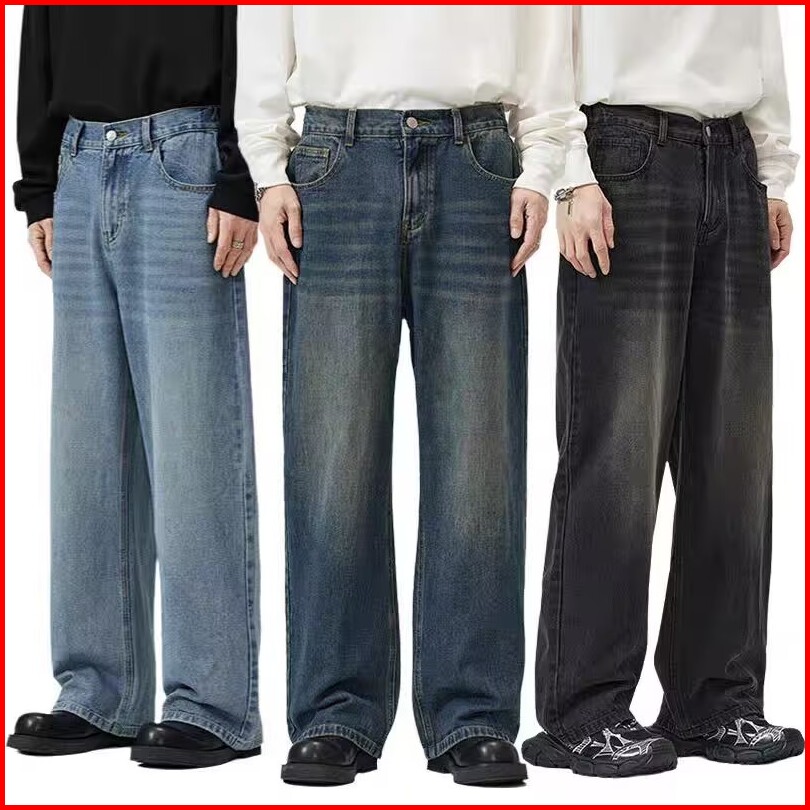 St.lab Studio Celana Jeans Lurus Longgar Kaki Lebar Pria Celana Denim Retro Amerika