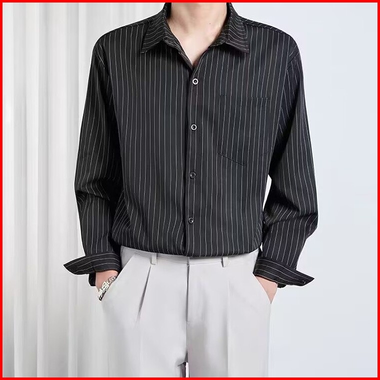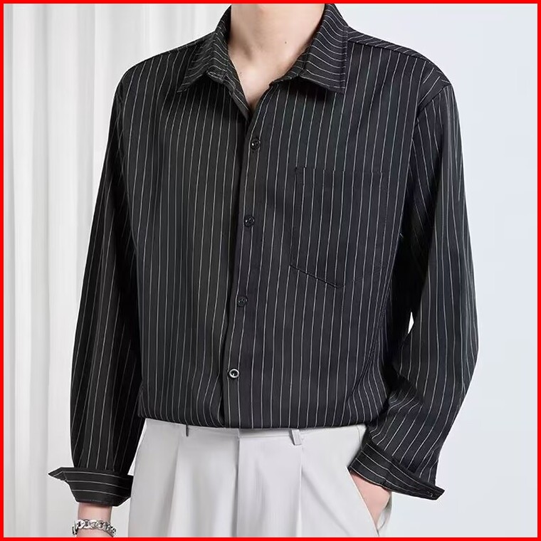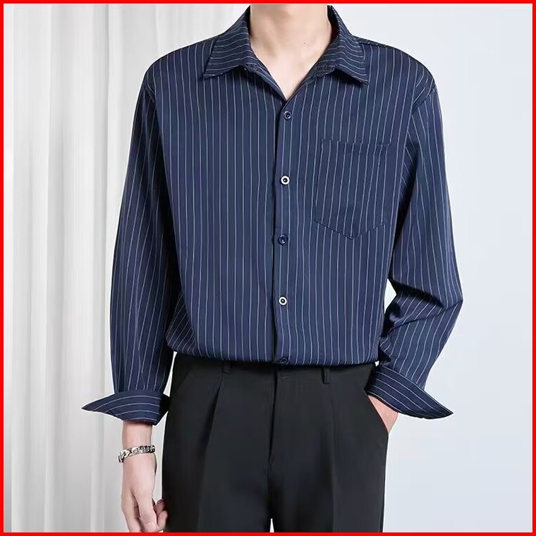 St.labstudio Kemeja Pria Lengan Panjang Bergaris Slim Fit Ukuran Besar Atasan Kemeja Lengan Panjang