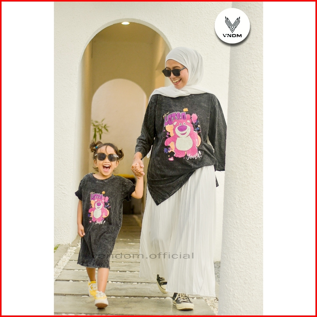 Vendom Dress Couple Mom And Kids Baju Kembar Mama Anak Perempuan Bahan Cotton 30s