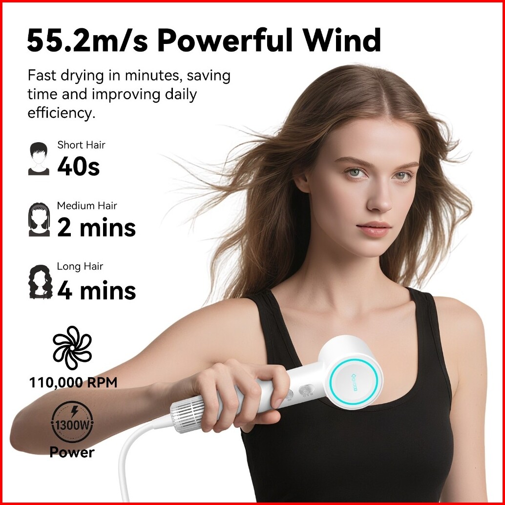 Gokoco Mini High Speed Hair Dryer 1 52 Miliar Negative Ion Quick Dry 110 000 Rpm Portable Hair Dryer