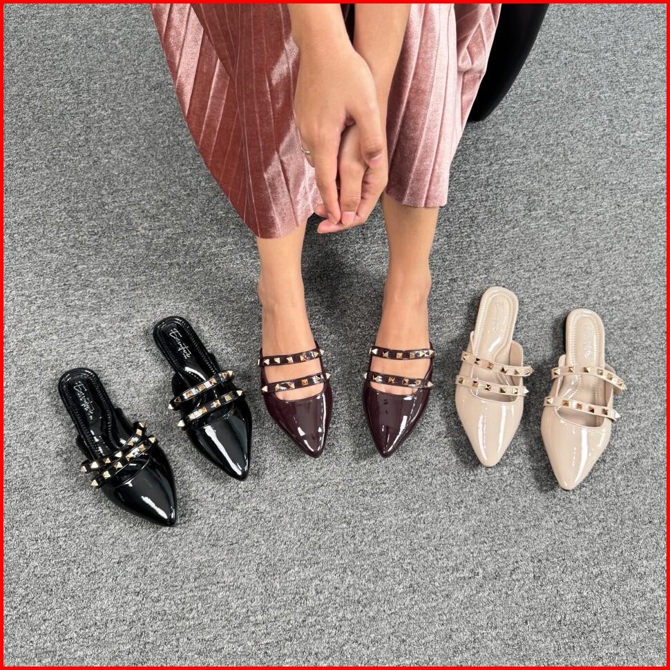 Executive - Kenzy Sepatu Sandal Flat Mules Wanita Glossy