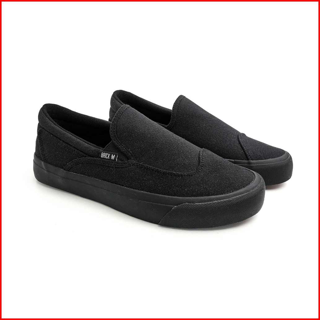 Brick Mansions - Olimpus Full Black Sepatu Slip On Sneakers Casual Pria Wanita