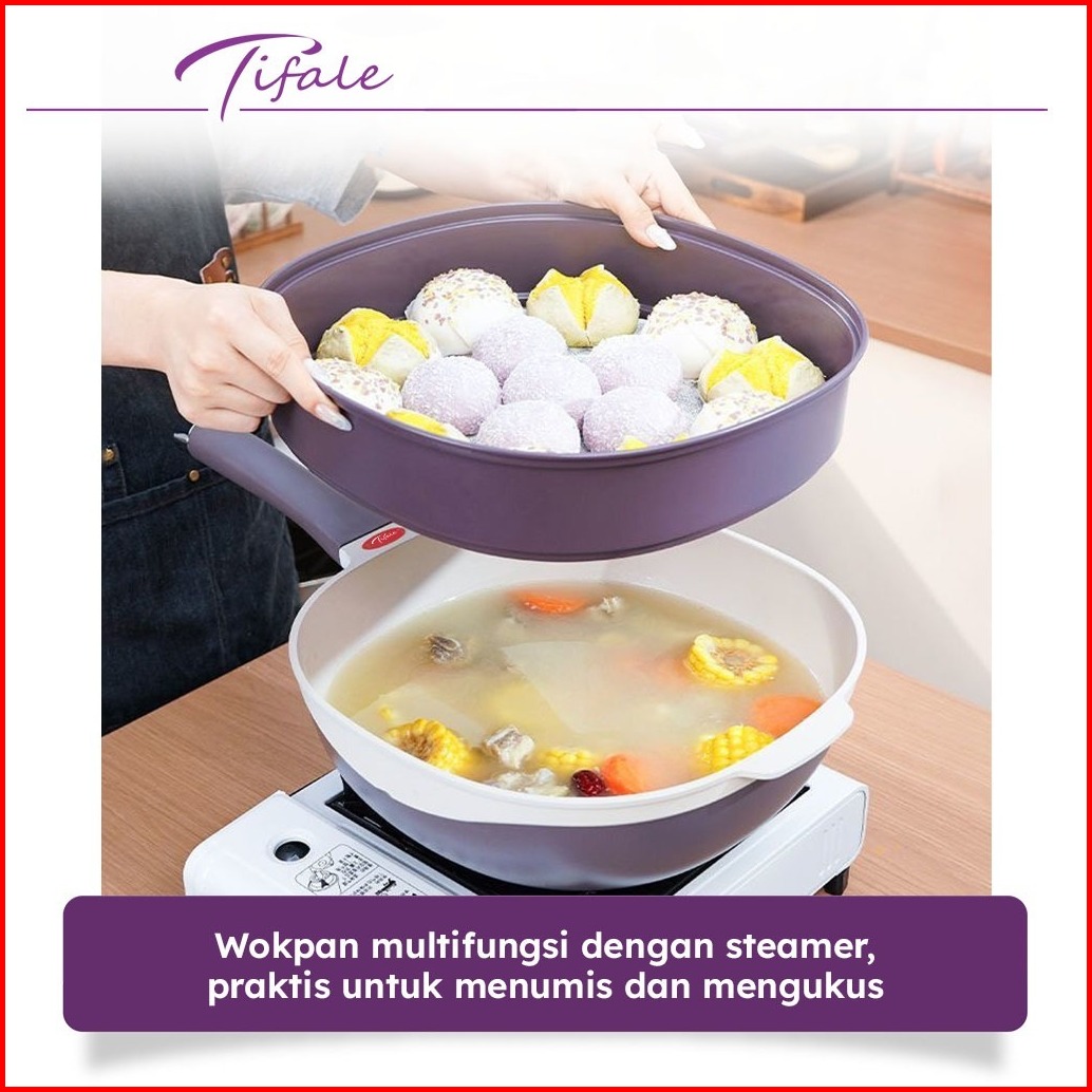 Bebehome X Tifale Padova Wokpan Steamer 32cm Wajan Panci Kukus Anti Lengket Multifungsi