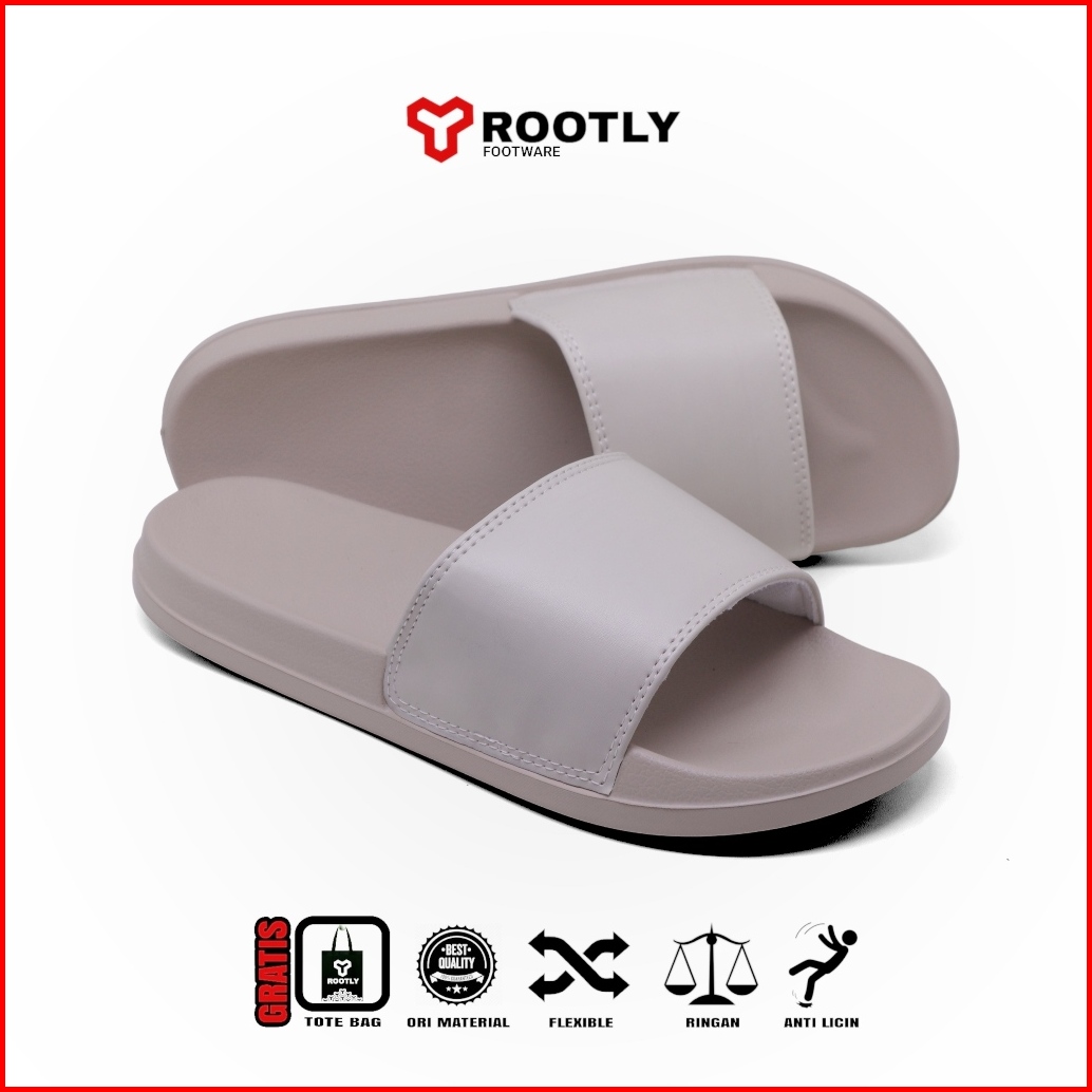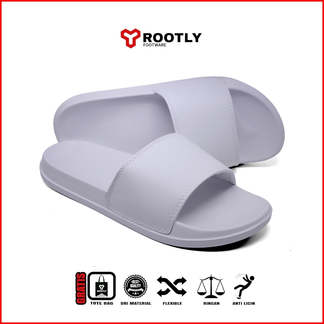 Rootly - Sandal Pria Wanita Full White Putih Polos