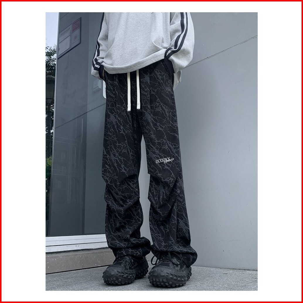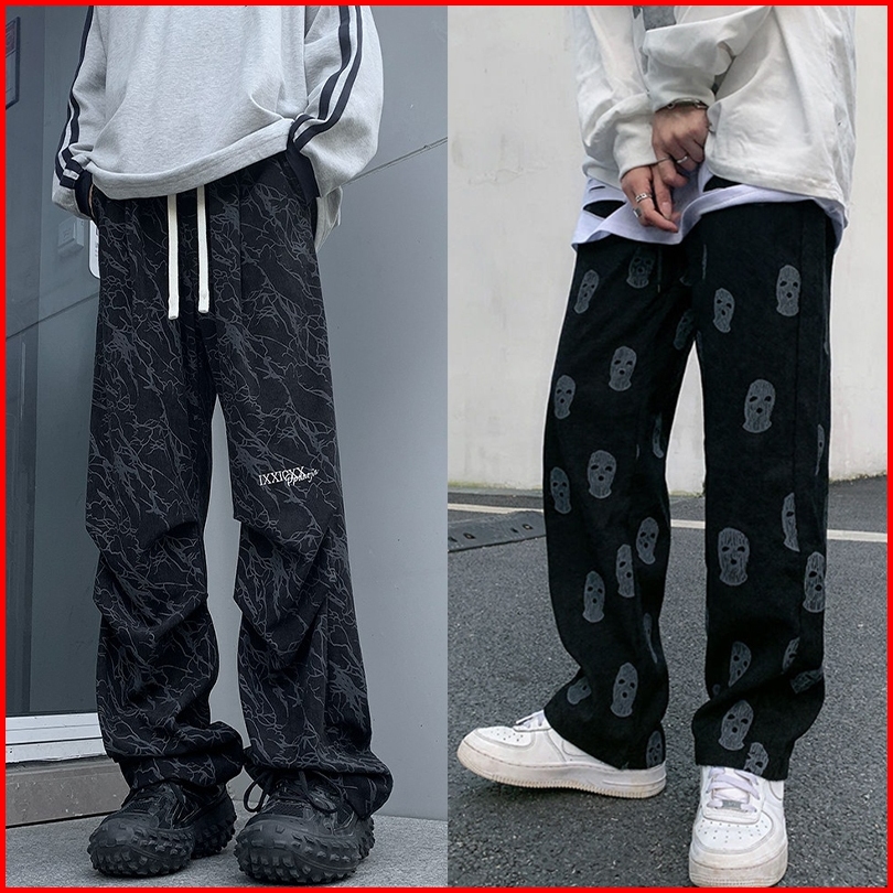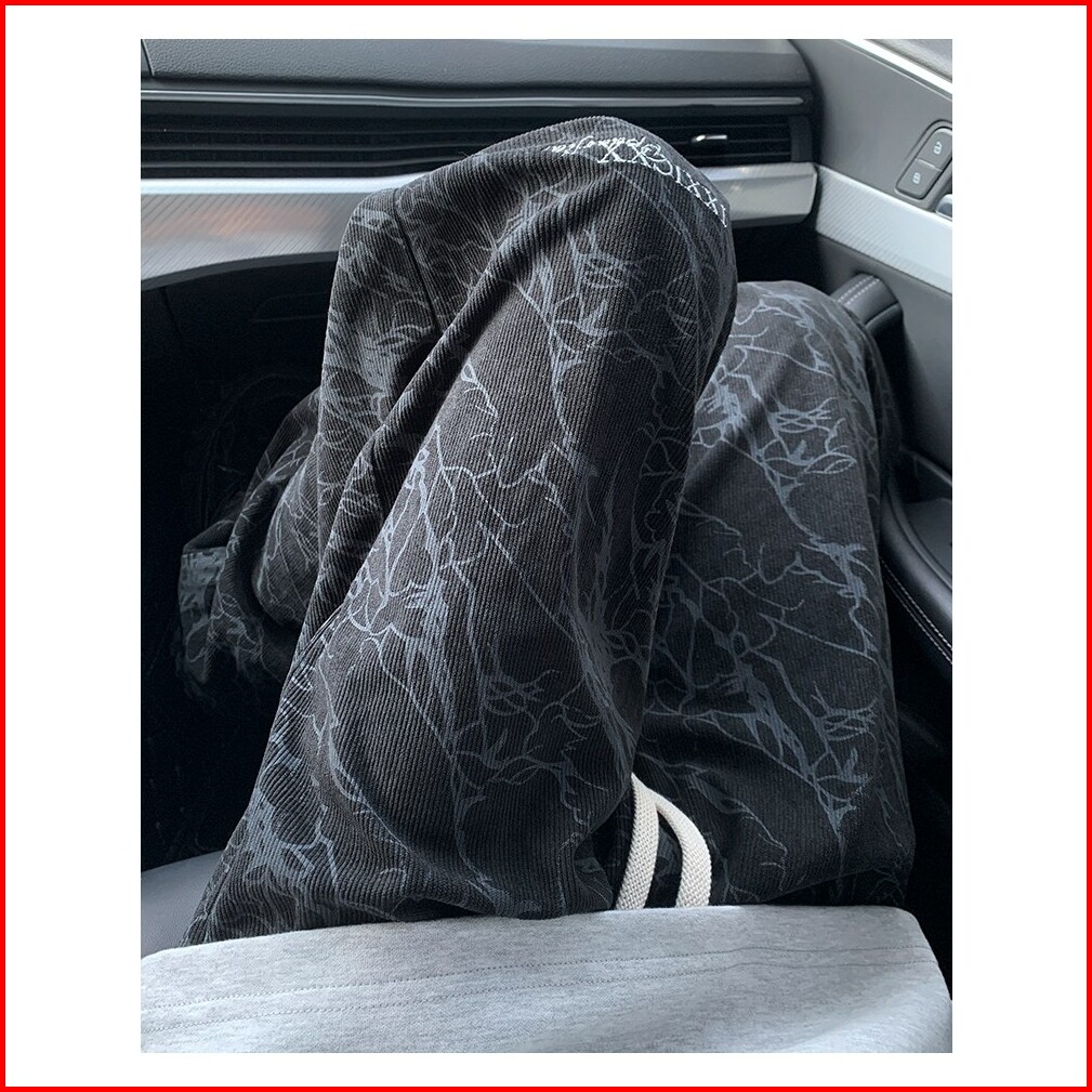 Livveharft Celana Oversize Longgar Sweatpants Celana Corduroy Hitam Pria Keren Y2k Pants