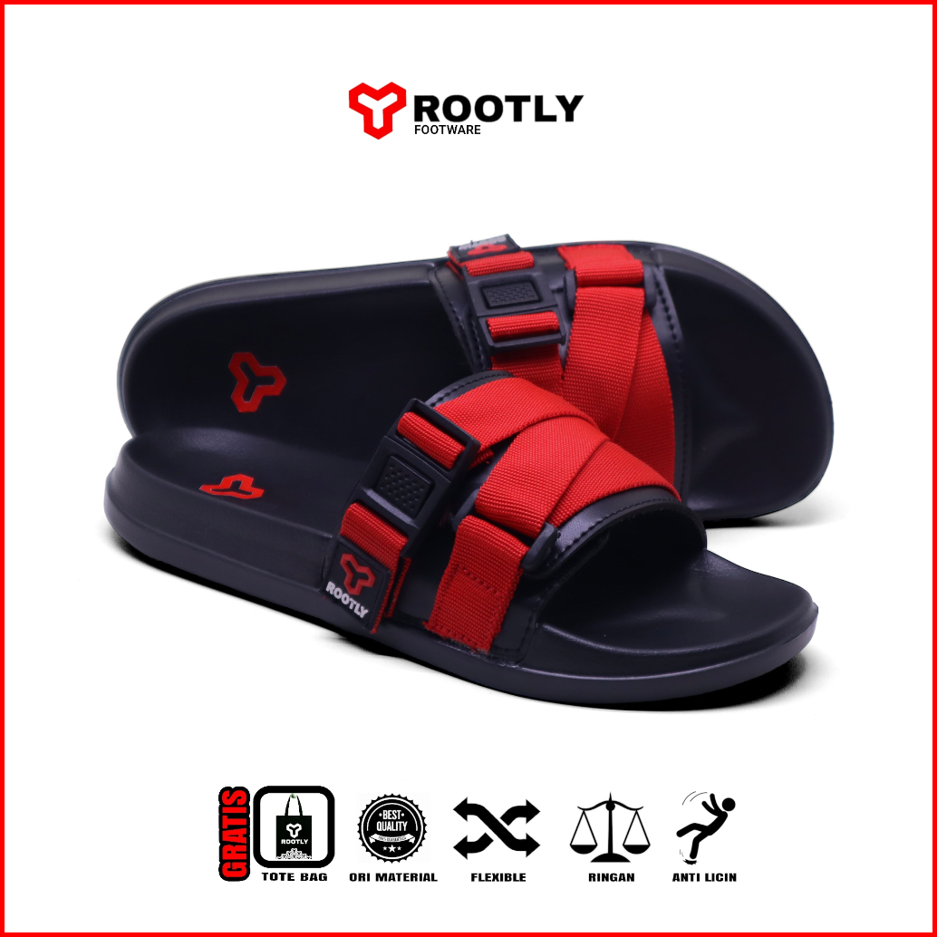 Rootly - Sandal Velcro Red Selop Teca X Slide On Pria
