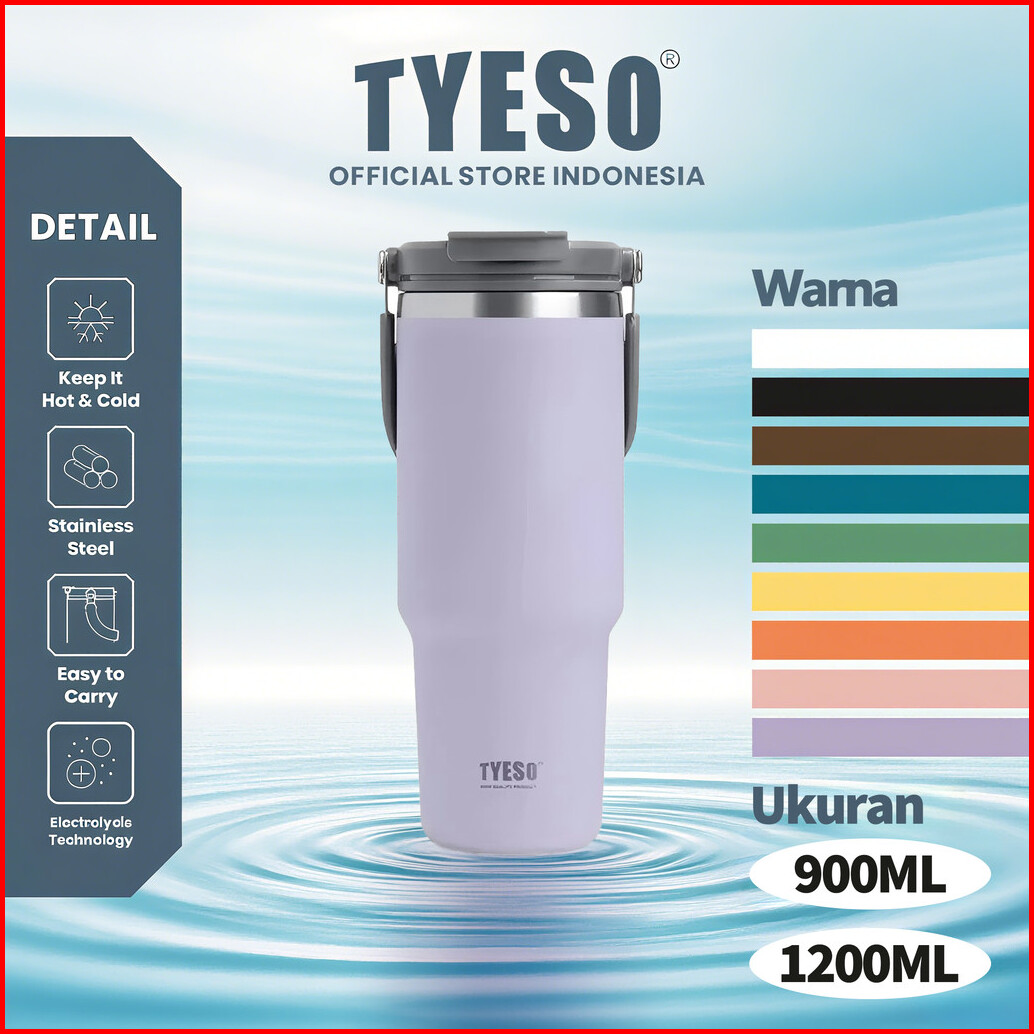 Ss X Tyeso Tumbler Coffee Mug Tumbler Minum 900ml 1200ml Ts-8828 Aesthetic Korea Kantoran Tahan Dingin 24 Jam Mudah Di B