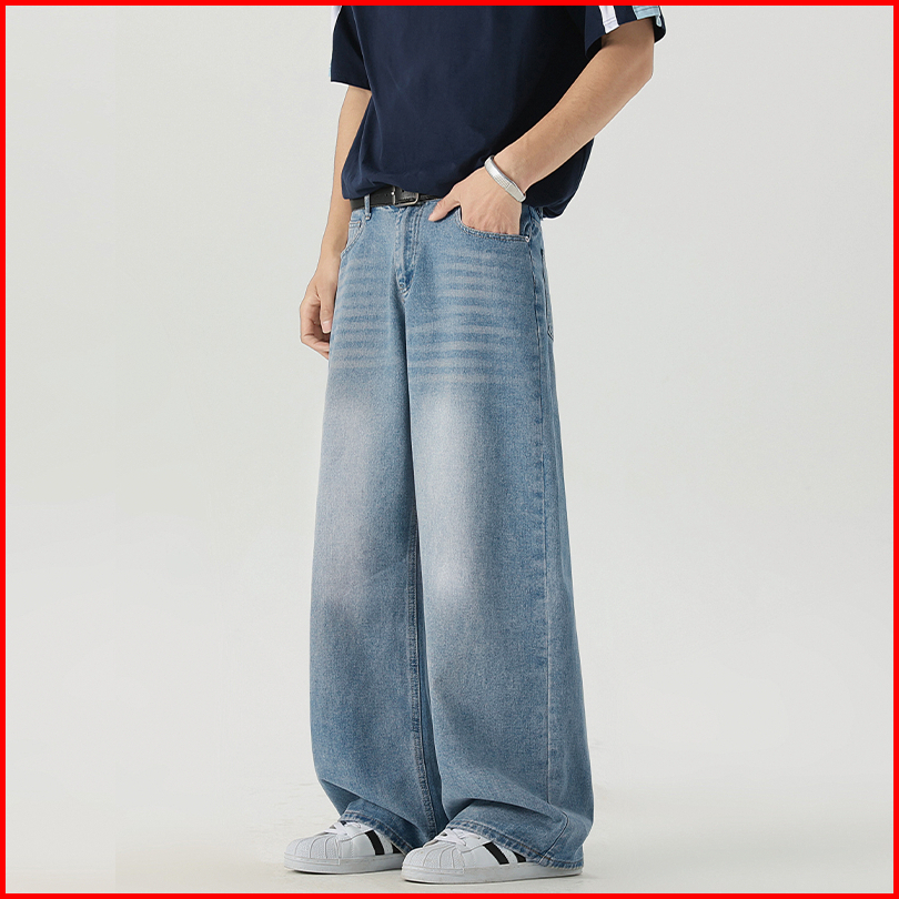 Keyboy Celana Jeans Pria Baggy Panjang Jeans Kulot Celana Pinggang Karet Jumbo Size S-5xl Fashion Pants Korean Style