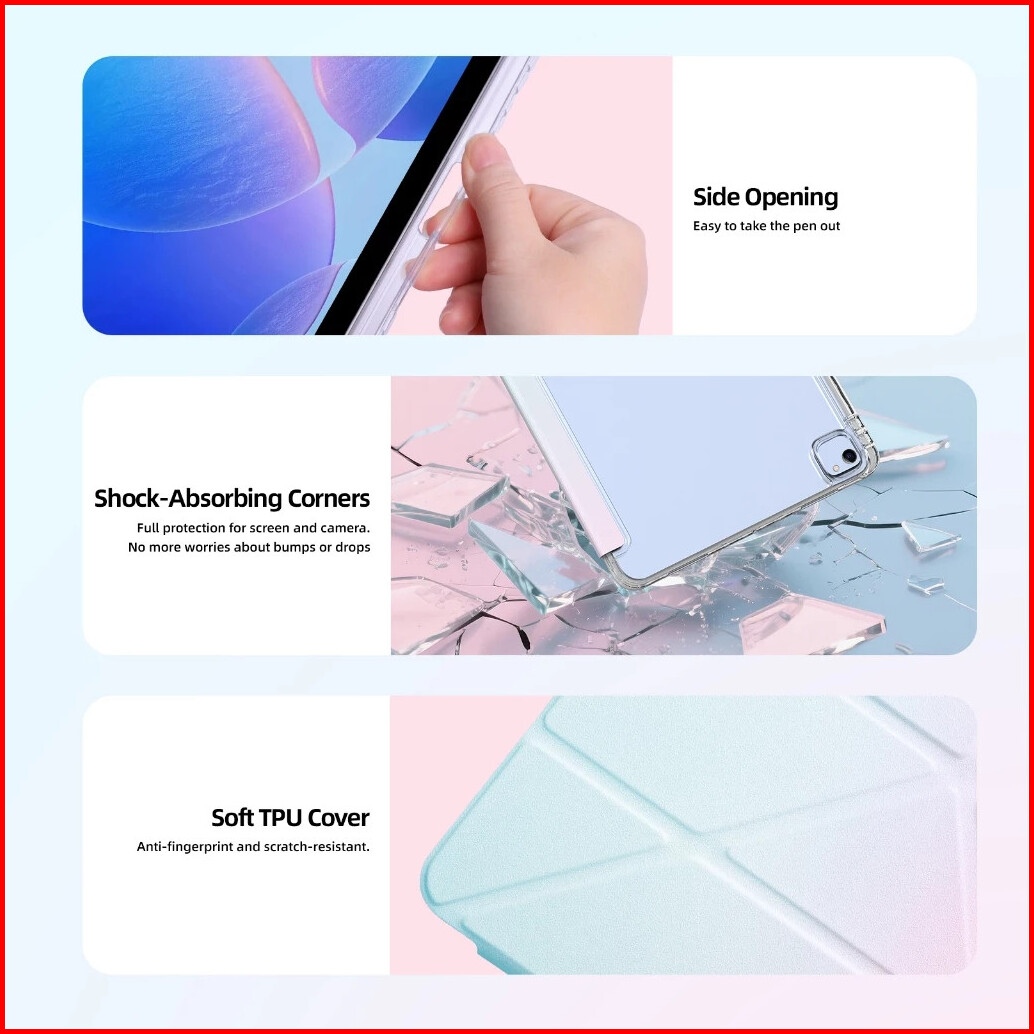 Goojoodoq 5-in-1 Folding Ipad Case Gradient Waterproof For Ipad Air 4 5 6 10th Ipad 10.2 2024 Pro 11