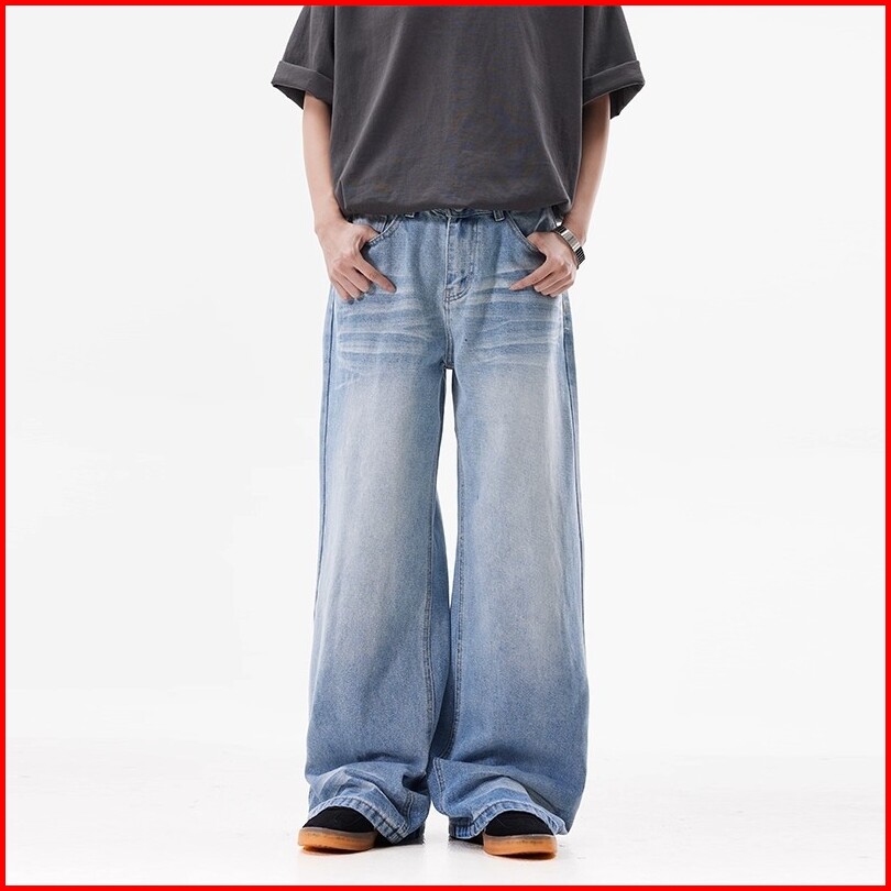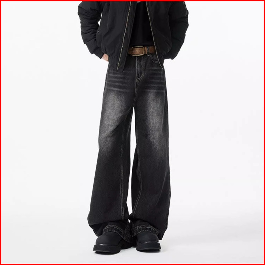 Keyboy Celana Jeans Panjang Pria Baggy Straight Cut Kulot Celana Dewasa Cowok Casual Denim Pants Korean Style